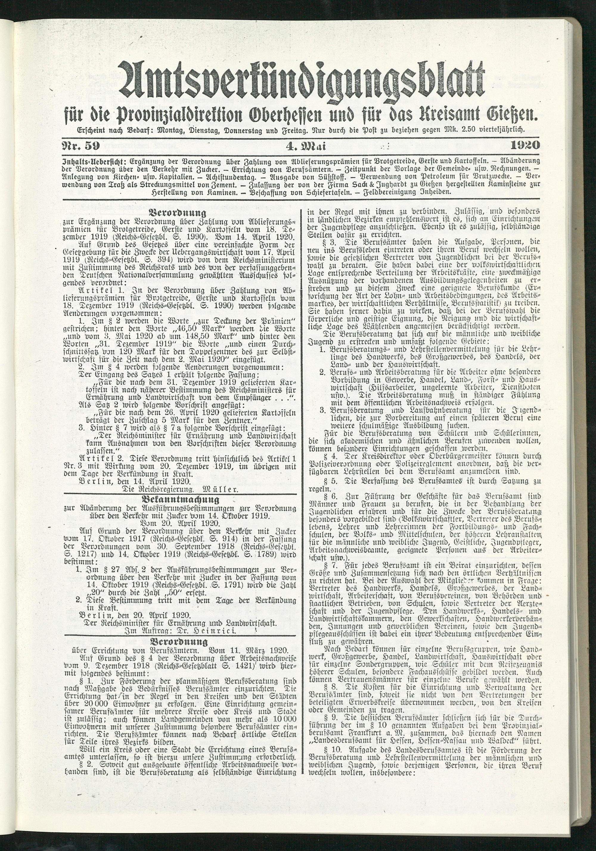 Amtsverkündigungsblatt für die Provinzialdirektion Oberhessen und der Kreisämter Gießen, Friedberg, Büdingen, Lauterbach, Schotten und Alsfeld. 1919-1937