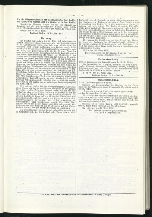 Amtsverkündigungsblatt für die Provinzialdirektion Oberhessen und der Kreisämter Gießen, Friedberg, Büdingen, Lauterbach, Schotten und Alsfeld. 1919-1937