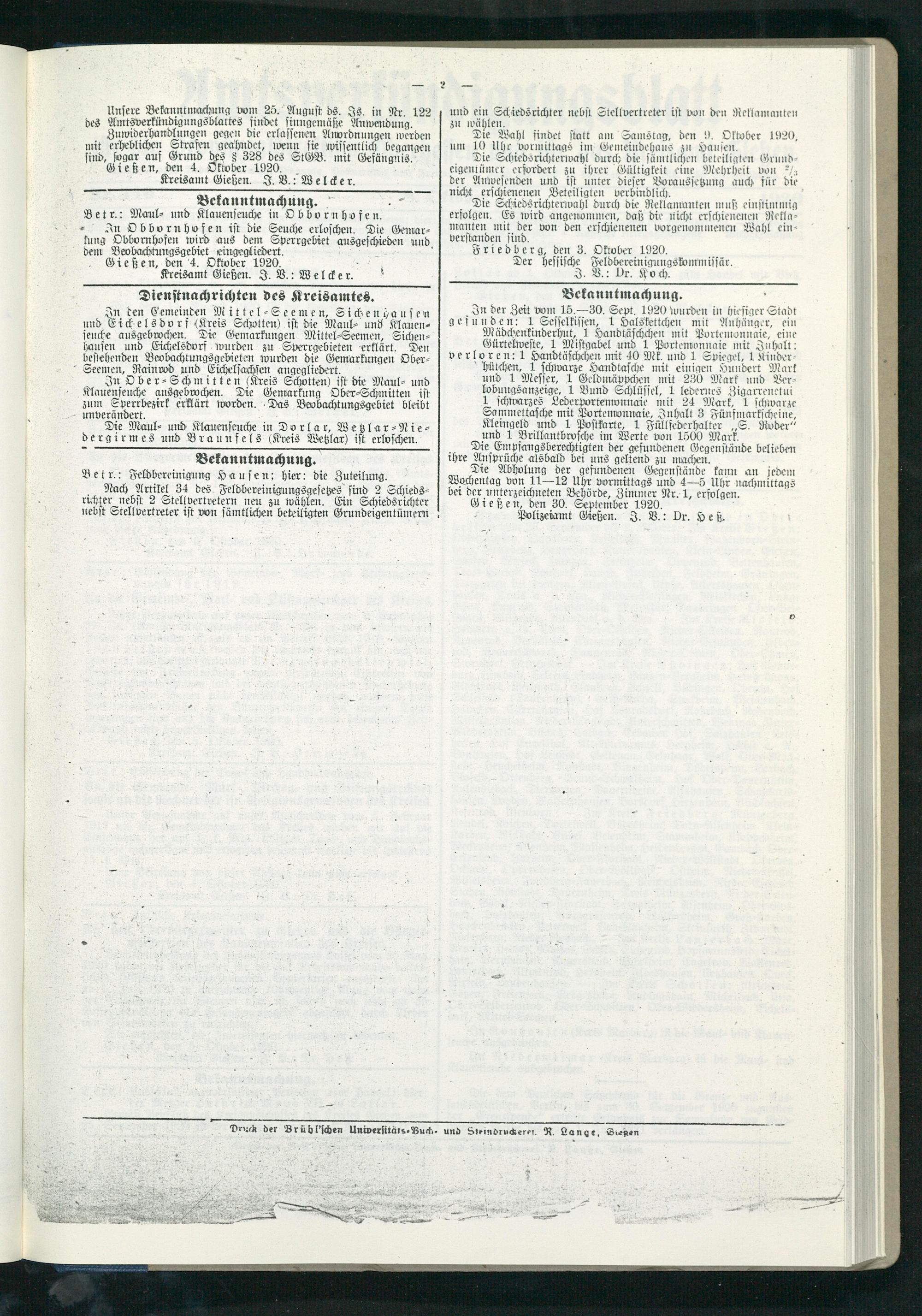 Amtsverkündigungsblatt für die Provinzialdirektion Oberhessen und der Kreisämter Gießen, Friedberg, Büdingen, Lauterbach, Schotten und Alsfeld. 1919-1937