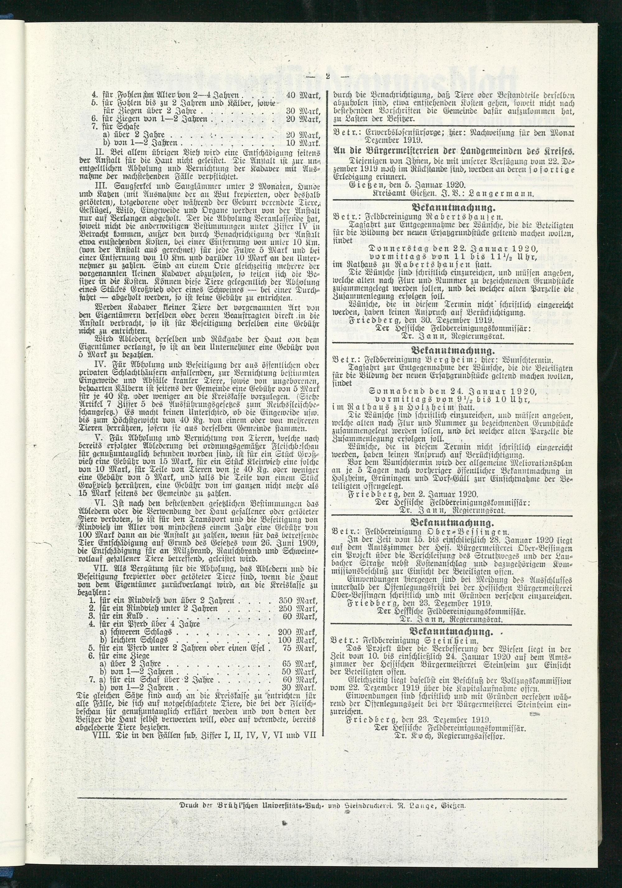 Amtsverkündigungsblatt für die Provinzialdirektion Oberhessen und der Kreisämter Gießen, Friedberg, Büdingen, Lauterbach, Schotten und Alsfeld. 1919-1937