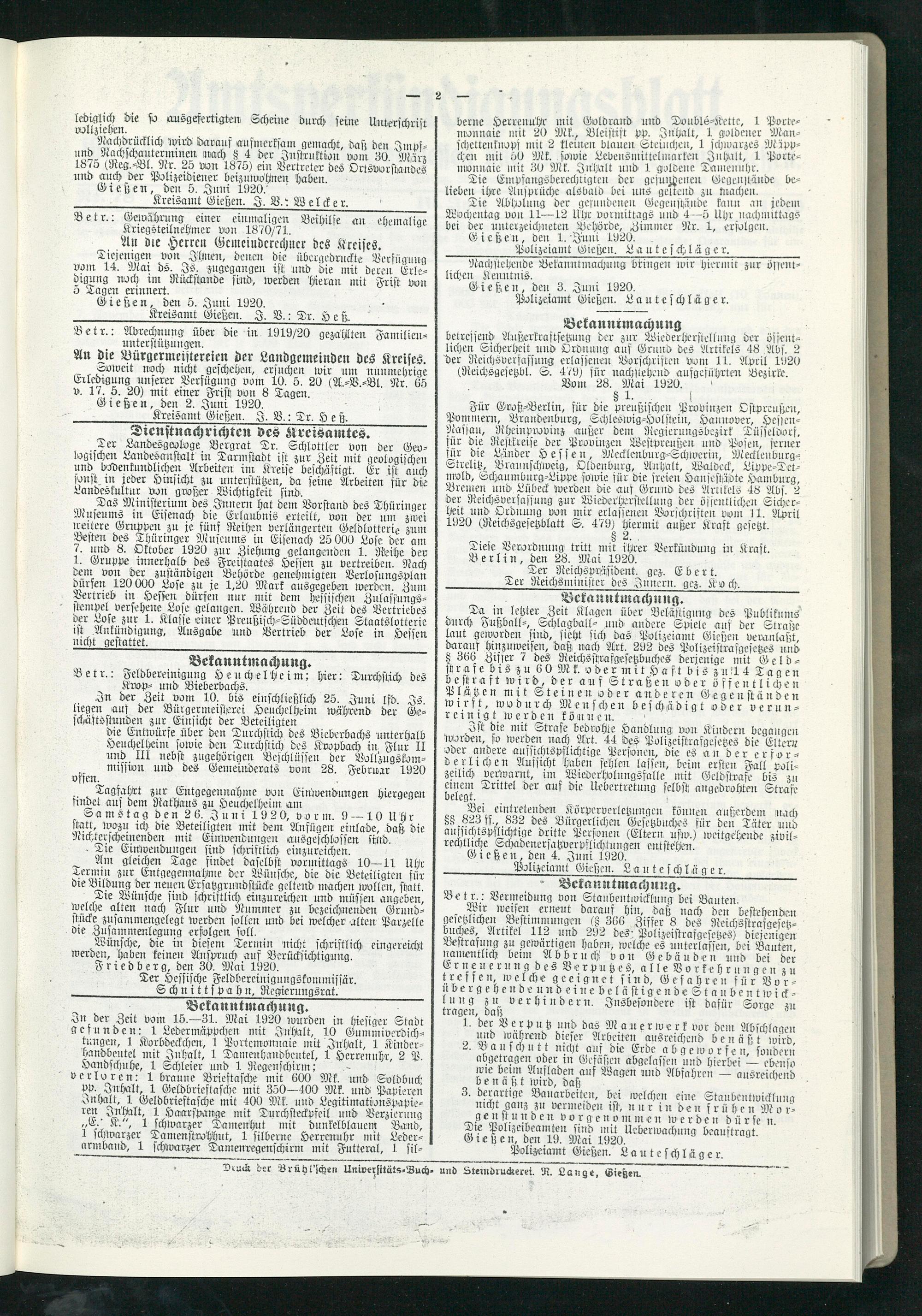Amtsverkündigungsblatt für die Provinzialdirektion Oberhessen und der Kreisämter Gießen, Friedberg, Büdingen, Lauterbach, Schotten und Alsfeld. 1919-1937