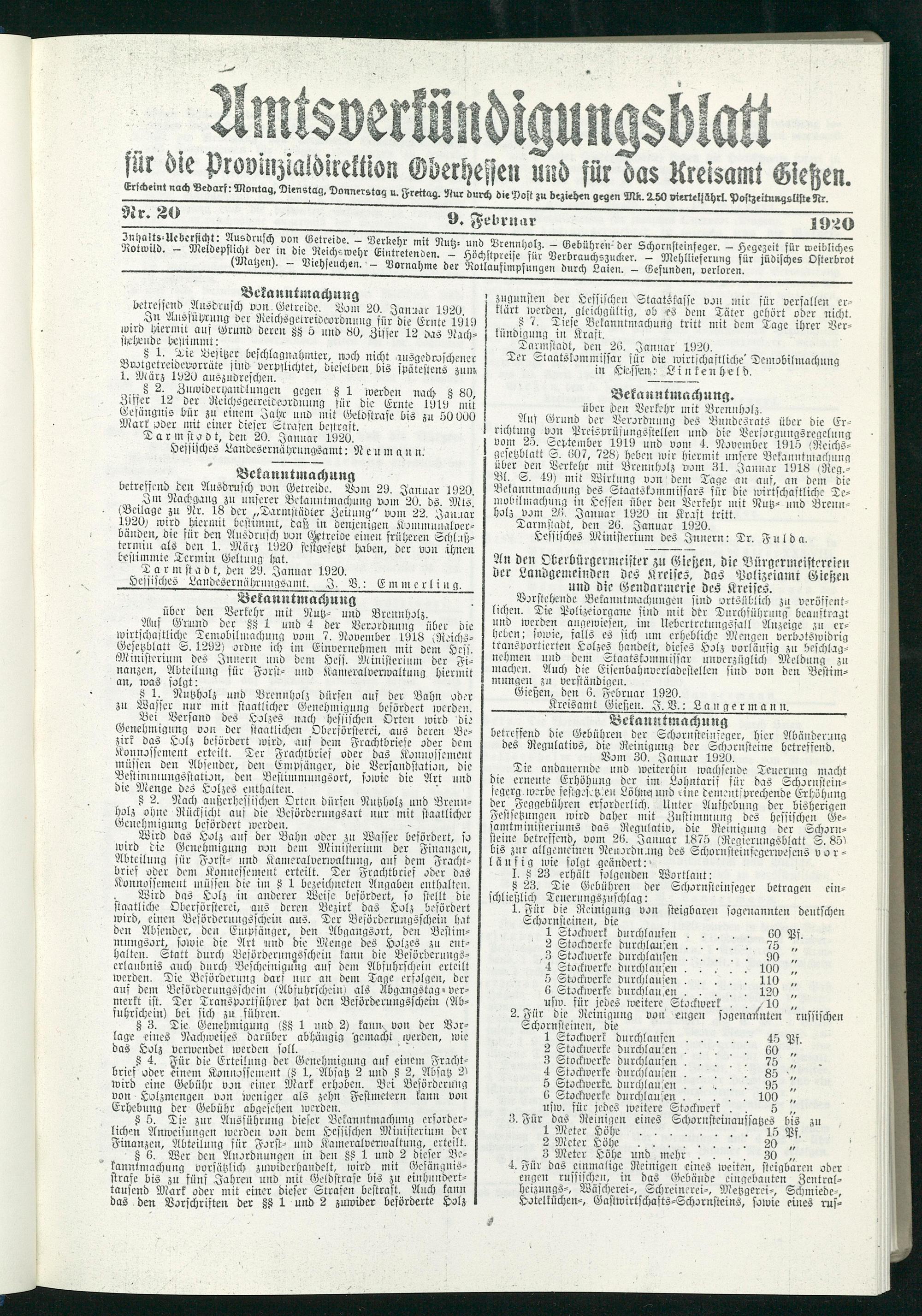 Amtsverkündigungsblatt für die Provinzialdirektion Oberhessen und der Kreisämter Gießen, Friedberg, Büdingen, Lauterbach, Schotten und Alsfeld. 1919-1937