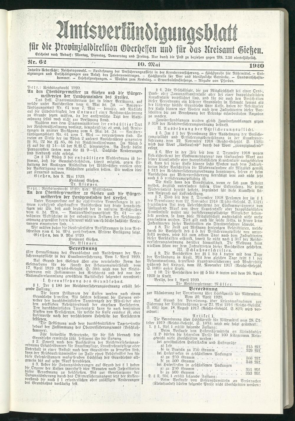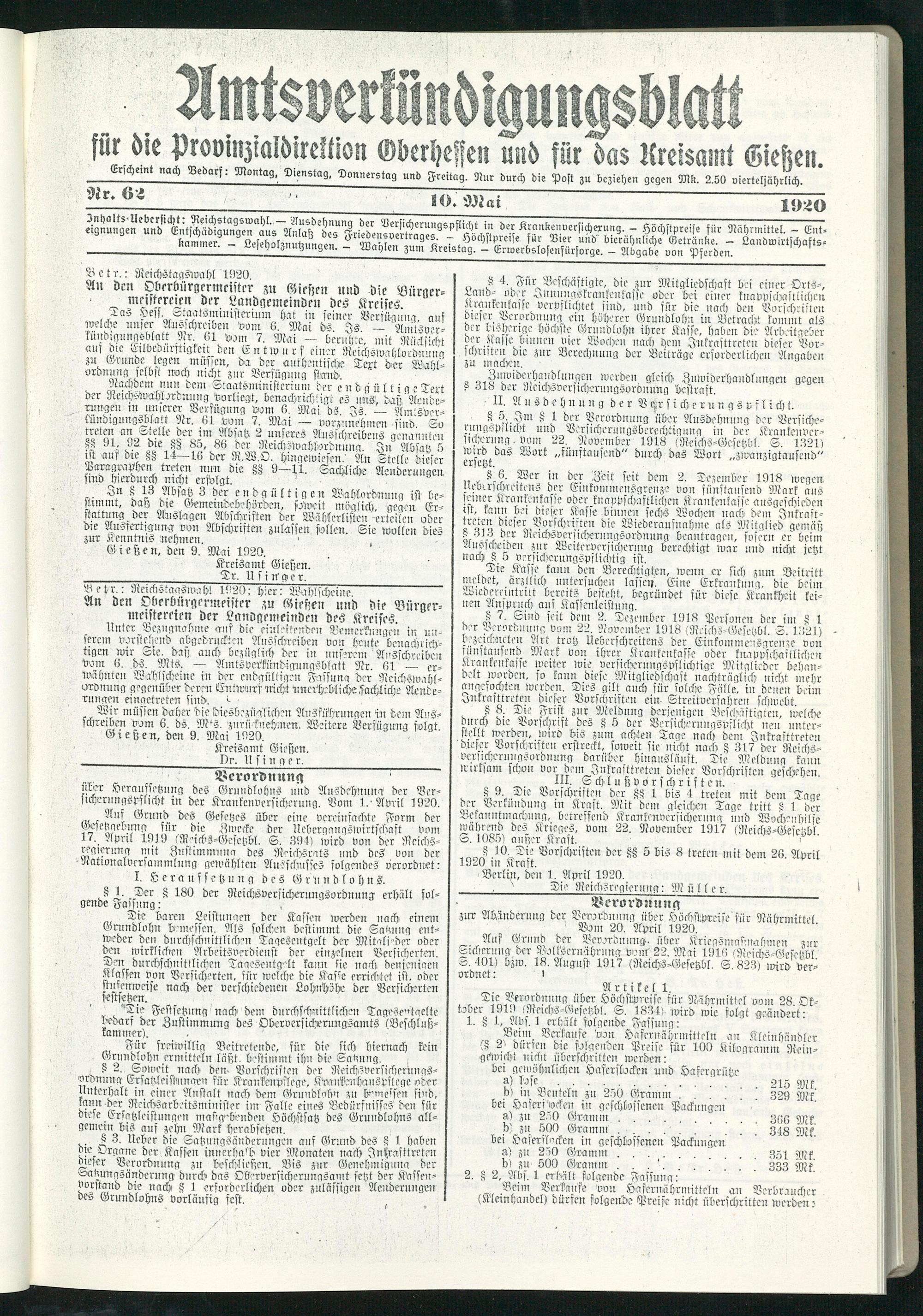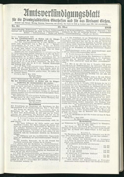 Amtsverkündigungsblatt für die Provinzialdirektion Oberhessen und der Kreisämter Gießen, Friedberg, Büdingen, Lauterbach, Schotten und Alsfeld. 1919-1937