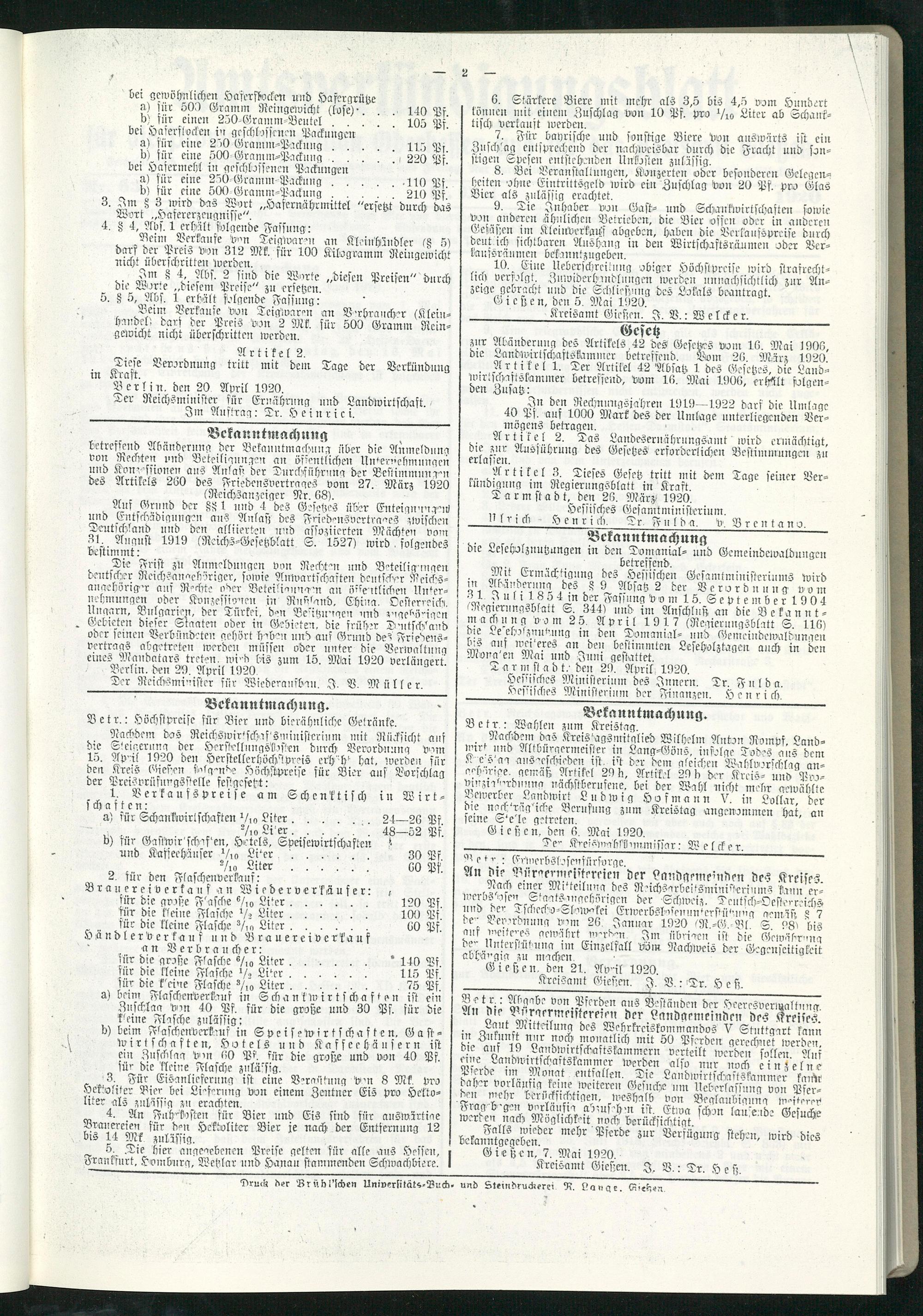 Amtsverkündigungsblatt für die Provinzialdirektion Oberhessen und der Kreisämter Gießen, Friedberg, Büdingen, Lauterbach, Schotten und Alsfeld. 1919-1937