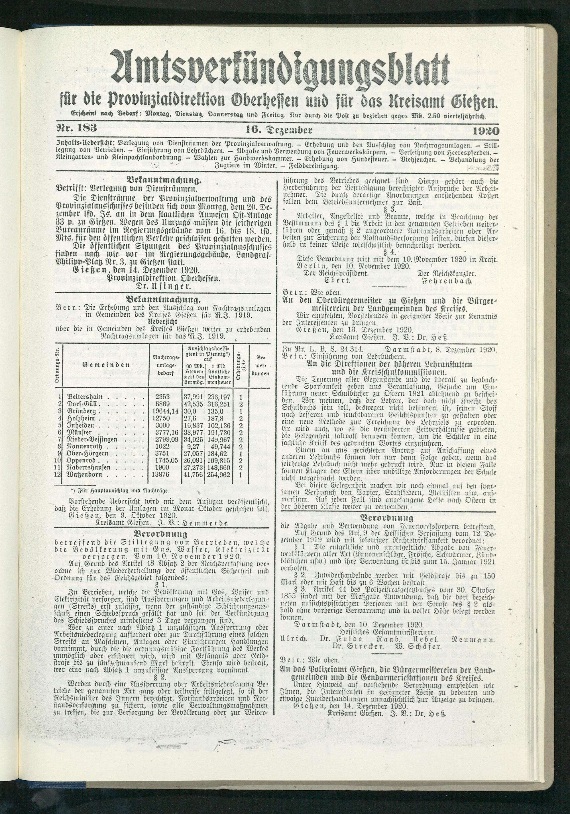 Amtsverkündigungsblatt für die Provinzialdirektion Oberhessen und der Kreisämter Gießen, Friedberg, Büdingen, Lauterbach, Schotten und Alsfeld. 1919-1937
