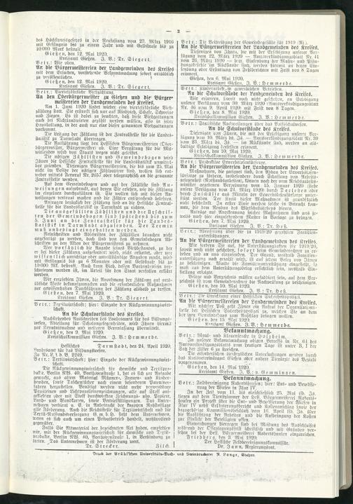 Amtsverkündigungsblatt für die Provinzialdirektion Oberhessen und der Kreisämter Gießen, Friedberg, Büdingen, Lauterbach, Schotten und Alsfeld. 1919-1937