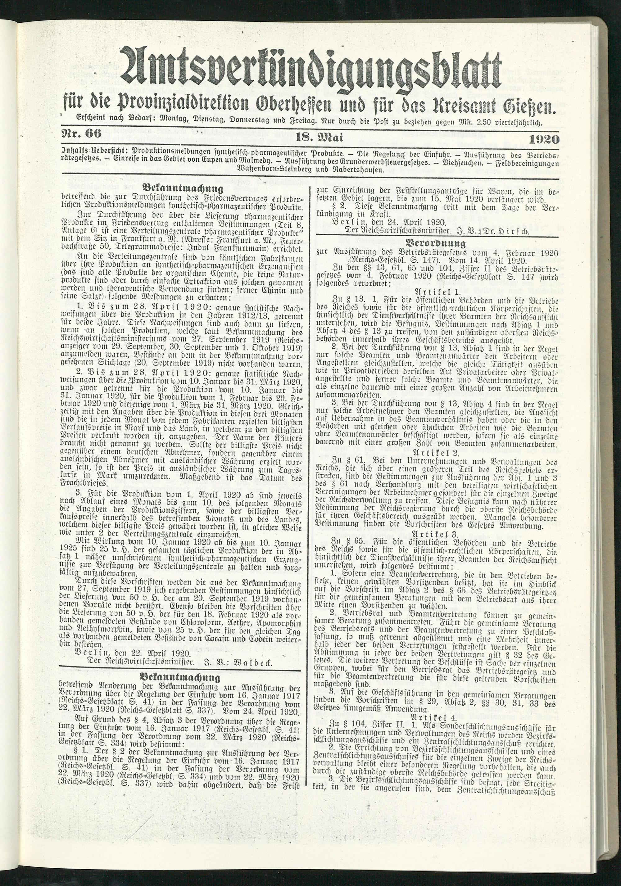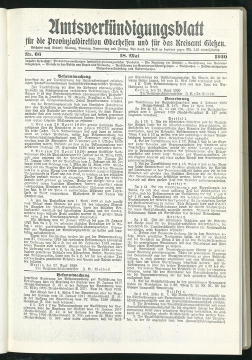 Amtsverkündigungsblatt für die Provinzialdirektion Oberhessen und der Kreisämter Gießen, Friedberg, Büdingen, Lauterbach, Schotten und Alsfeld. 1919-1937