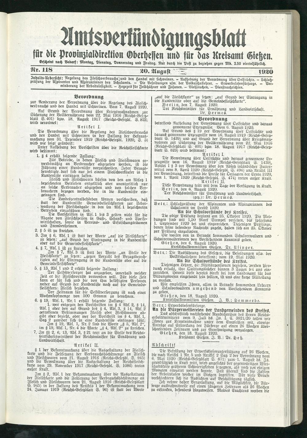 Amtsverkündigungsblatt für die Provinzialdirektion Oberhessen und der Kreisämter Gießen, Friedberg, Büdingen, Lauterbach, Schotten und Alsfeld. 1919-1937