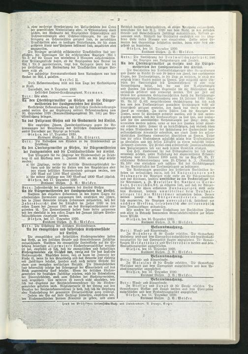 Amtsverkündigungsblatt für die Provinzialdirektion Oberhessen und der Kreisämter Gießen, Friedberg, Büdingen, Lauterbach, Schotten und Alsfeld. 1919-1937