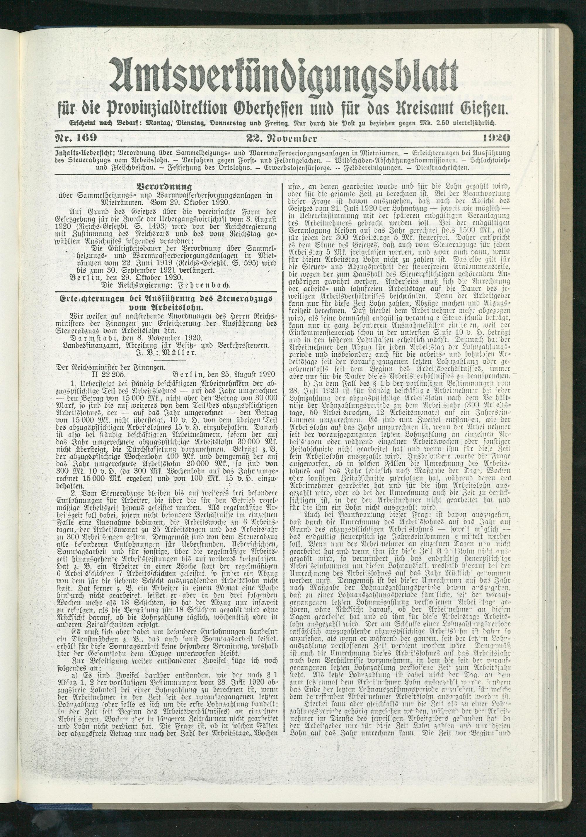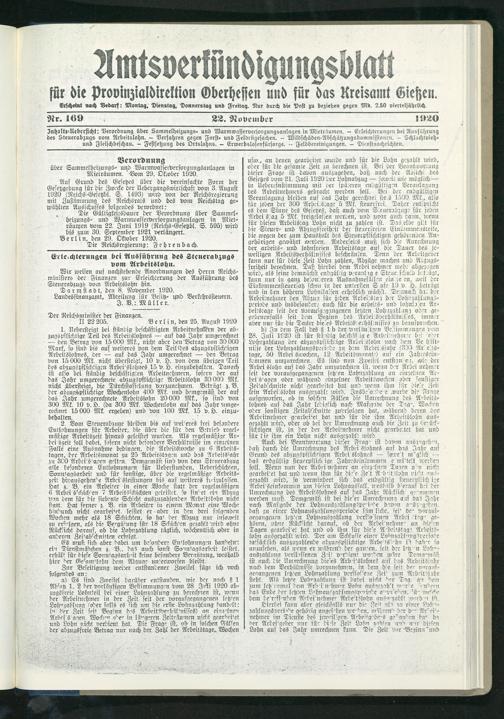 Amtsverkündigungsblatt für die Provinzialdirektion Oberhessen und der Kreisämter Gießen, Friedberg, Büdingen, Lauterbach, Schotten und Alsfeld. 1919-1937