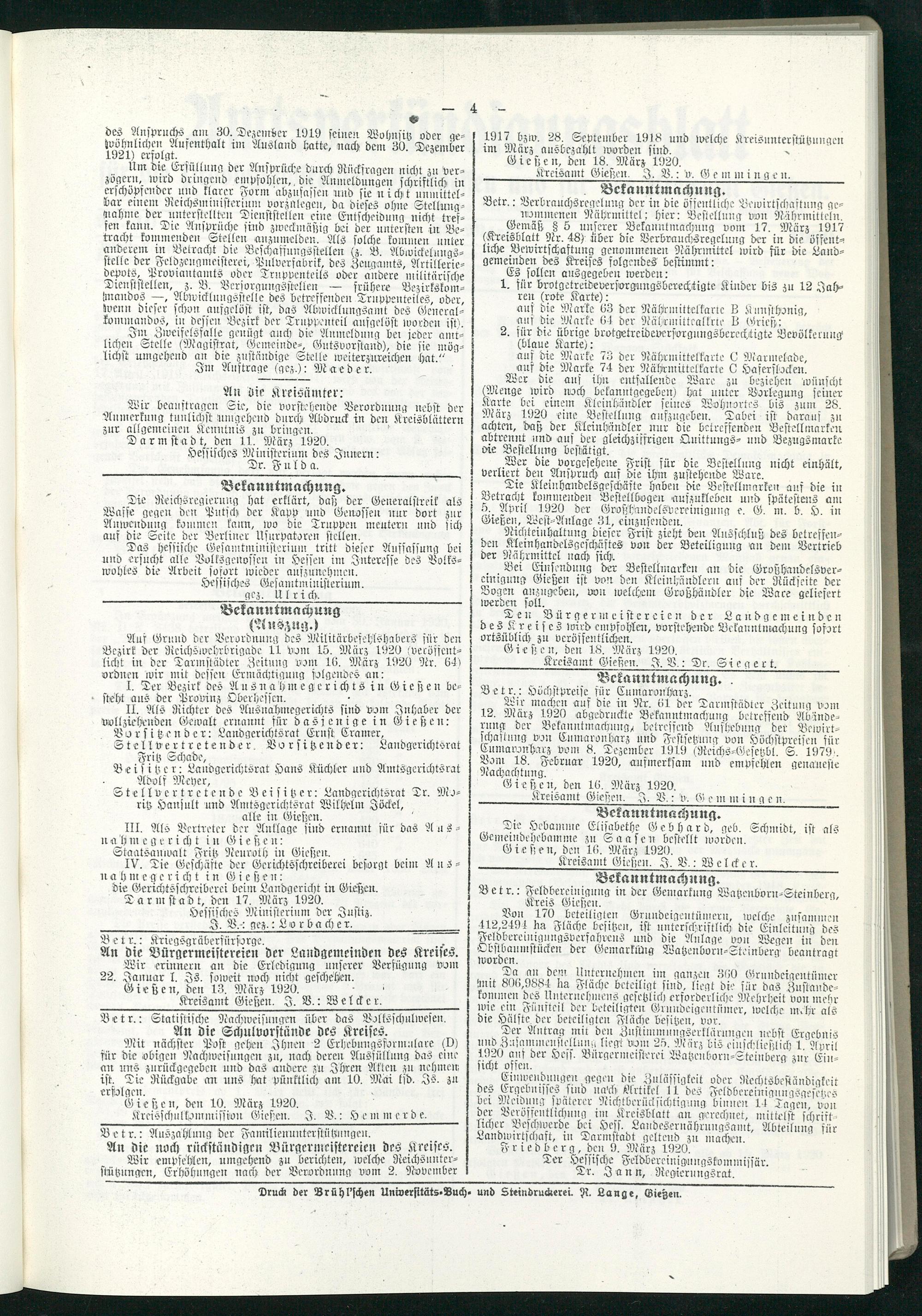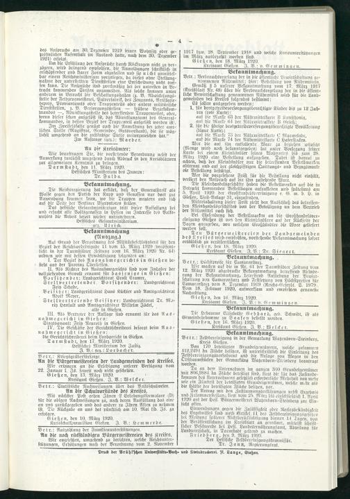 Amtsverkündigungsblatt für die Provinzialdirektion Oberhessen und der Kreisämter Gießen, Friedberg, Büdingen, Lauterbach, Schotten und Alsfeld. 1919-1937