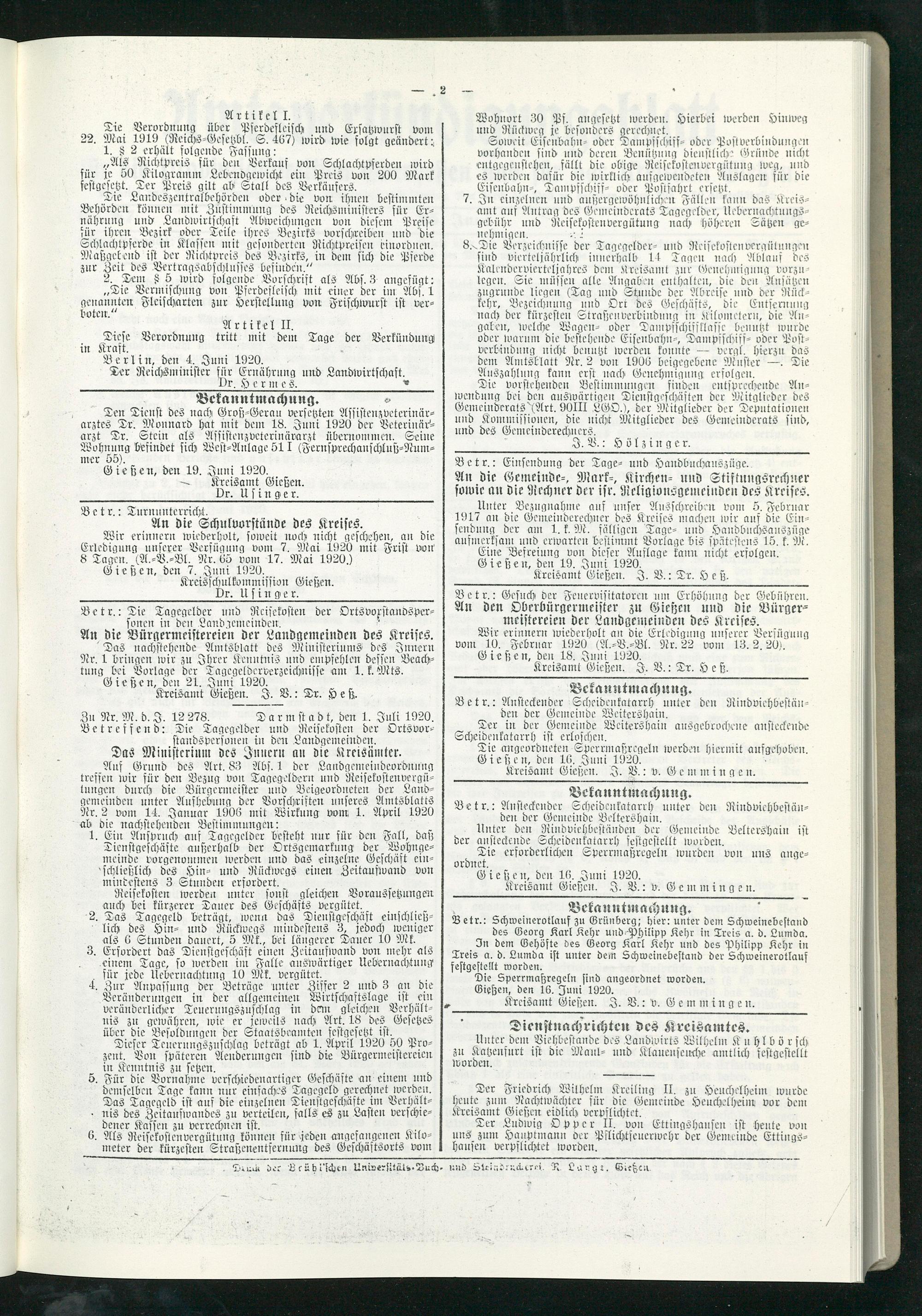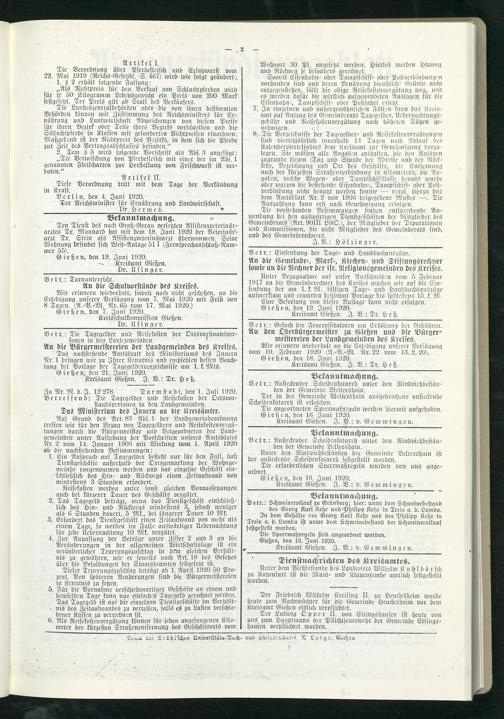 Amtsverkündigungsblatt für die Provinzialdirektion Oberhessen und der Kreisämter Gießen, Friedberg, Büdingen, Lauterbach, Schotten und Alsfeld. 1919-1937