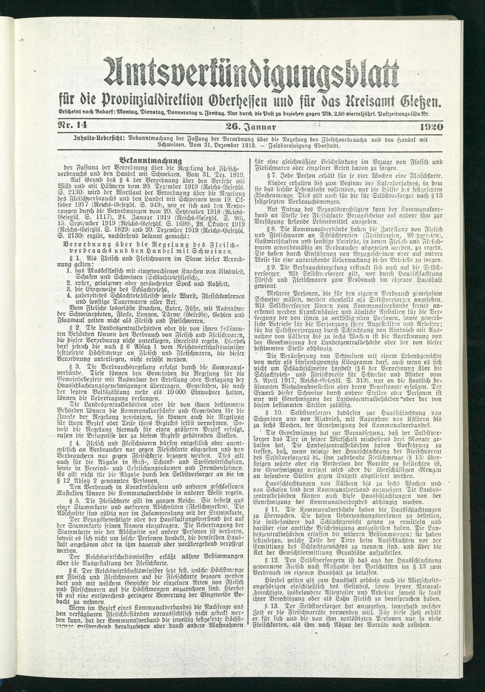 Amtsverkündigungsblatt für die Provinzialdirektion Oberhessen und der Kreisämter Gießen, Friedberg, Büdingen, Lauterbach, Schotten und Alsfeld. 1919-1937