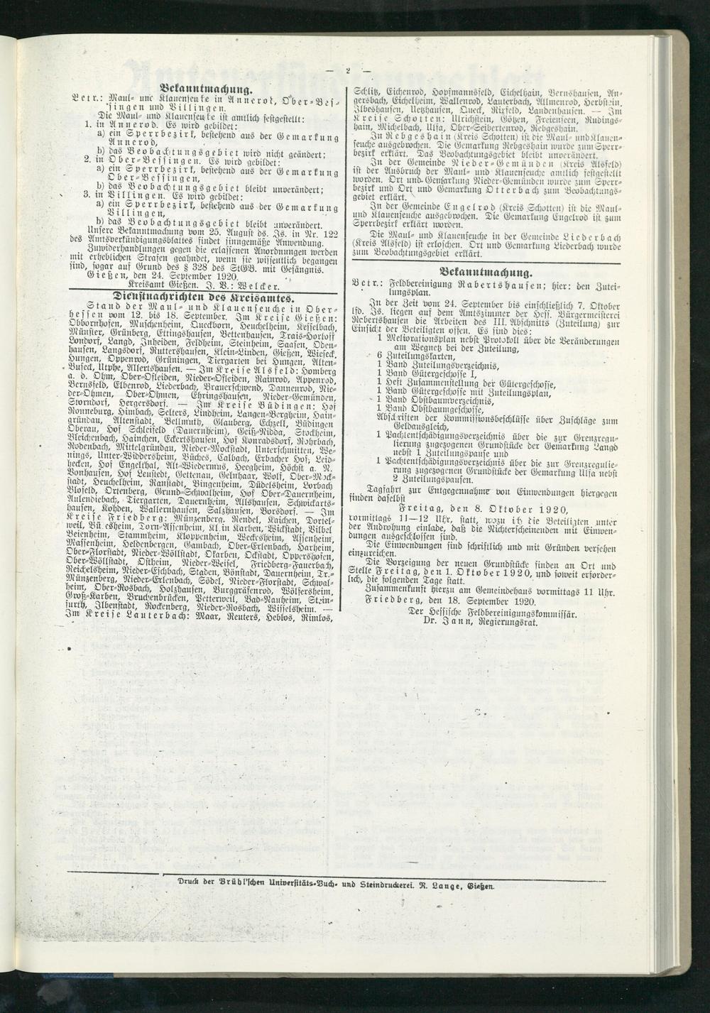 Amtsverkündigungsblatt für die Provinzialdirektion Oberhessen und der Kreisämter Gießen, Friedberg, Büdingen, Lauterbach, Schotten und Alsfeld. 1919-1937