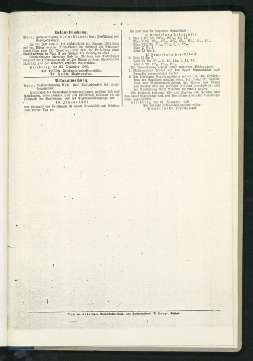 Amtsverkündigungsblatt für die Provinzialdirektion Oberhessen und der Kreisämter Gießen, Friedberg, Büdingen, Lauterbach, Schotten und Alsfeld. 1919-1937