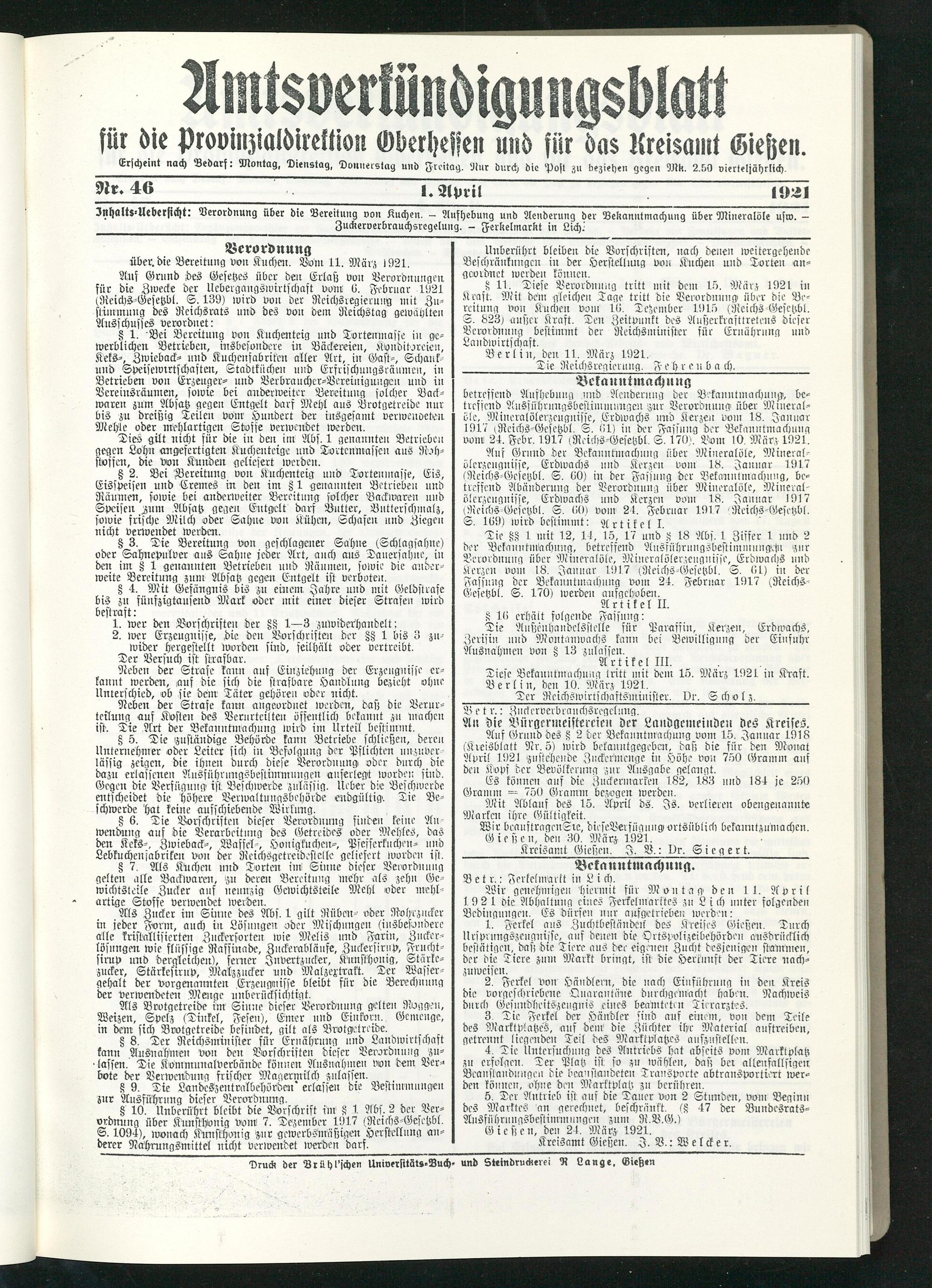 Amtsverkündigungsblatt für die Provinzialdirektion Oberhessen und der Kreisämter Gießen, Friedberg, Büdingen, Lauterbach, Schotten und Alsfeld. 1919-1937