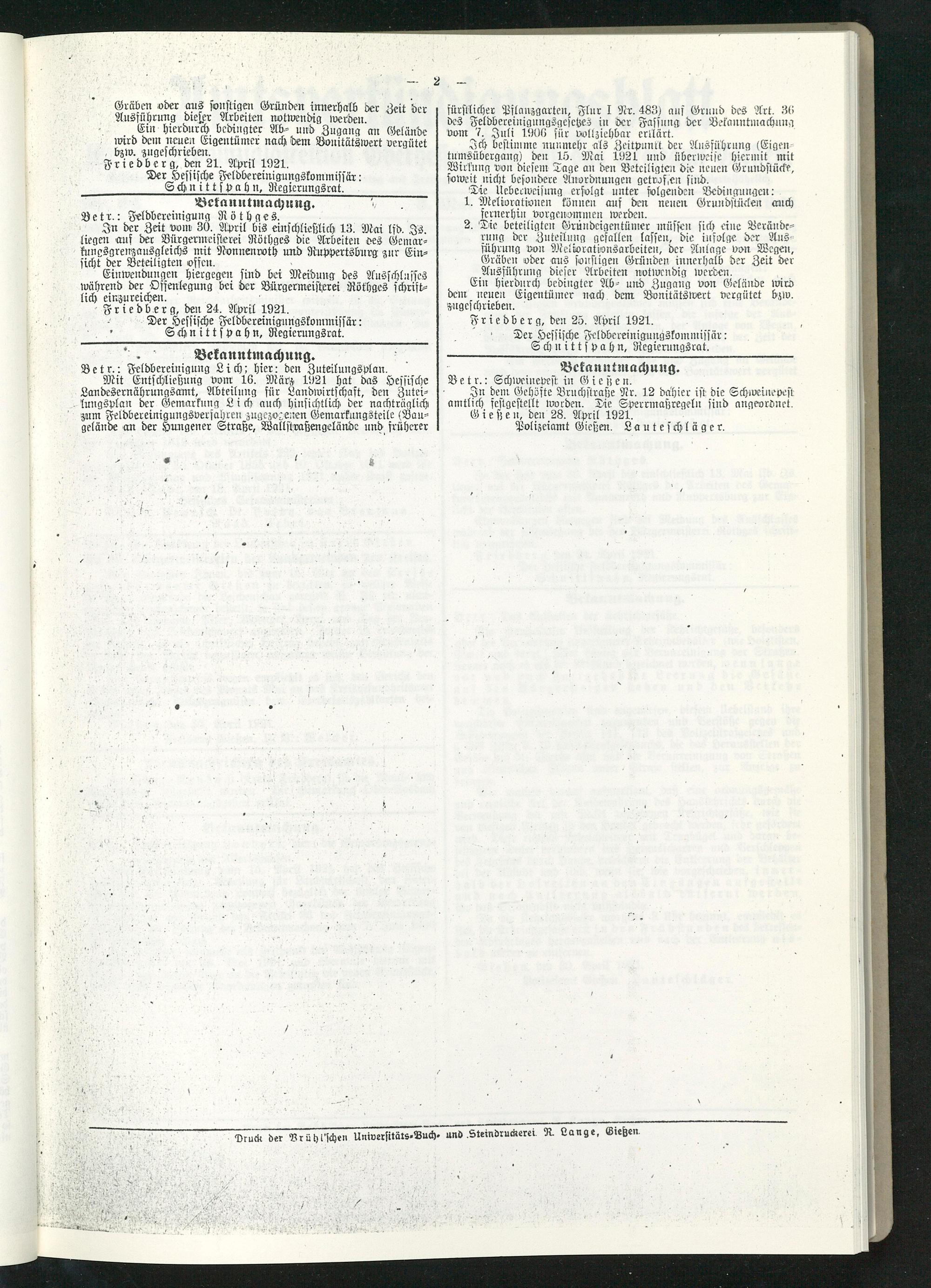 Amtsverkündigungsblatt für die Provinzialdirektion Oberhessen und der Kreisämter Gießen, Friedberg, Büdingen, Lauterbach, Schotten und Alsfeld. 1919-1937