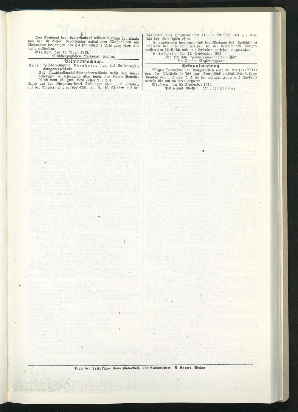 Amtsverkündigungsblatt für die Provinzialdirektion Oberhessen und der Kreisämter Gießen, Friedberg, Büdingen, Lauterbach, Schotten und Alsfeld. 1919-1937