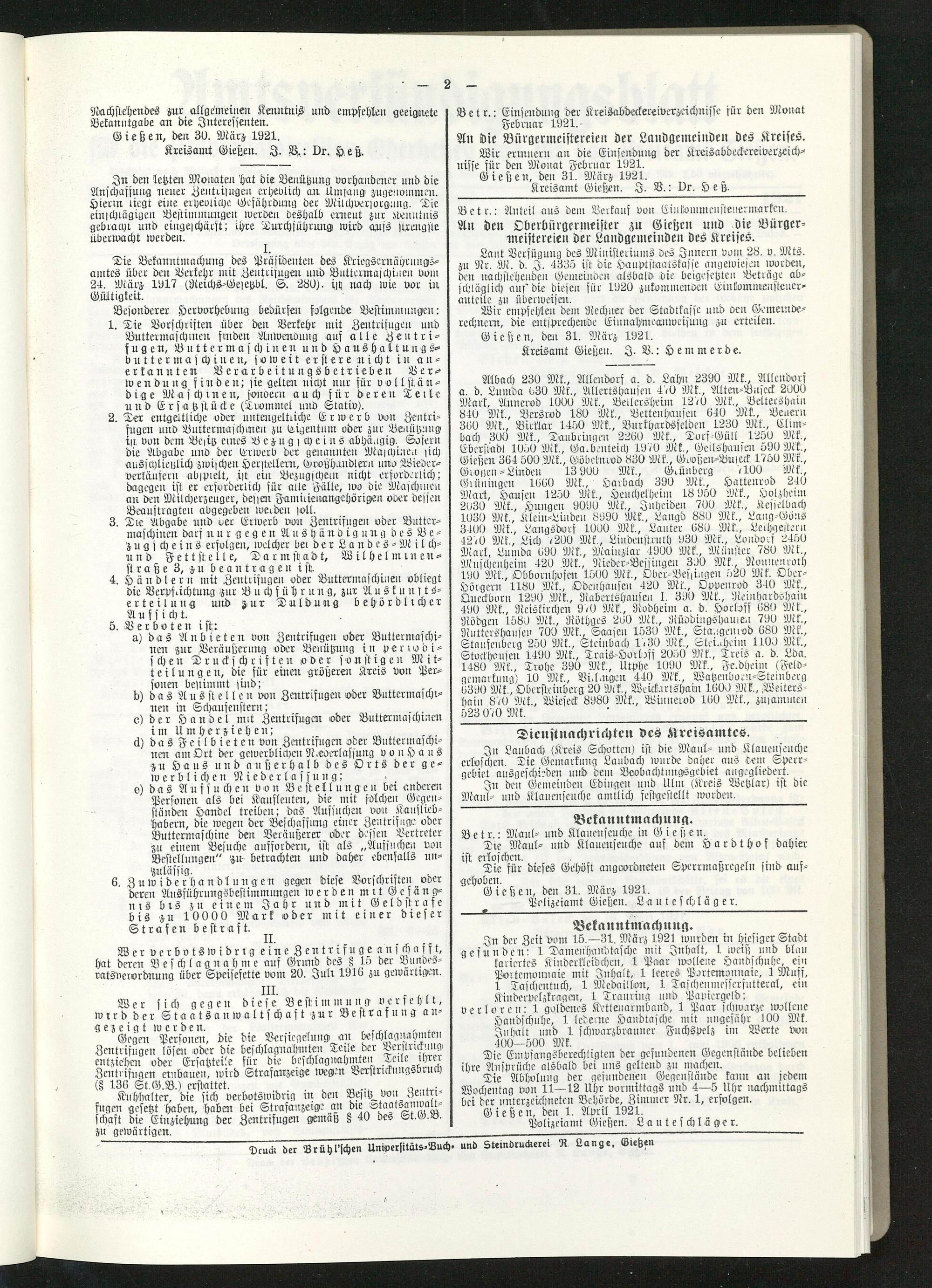 Amtsverkündigungsblatt für die Provinzialdirektion Oberhessen und der Kreisämter Gießen, Friedberg, Büdingen, Lauterbach, Schotten und Alsfeld. 1919-1937