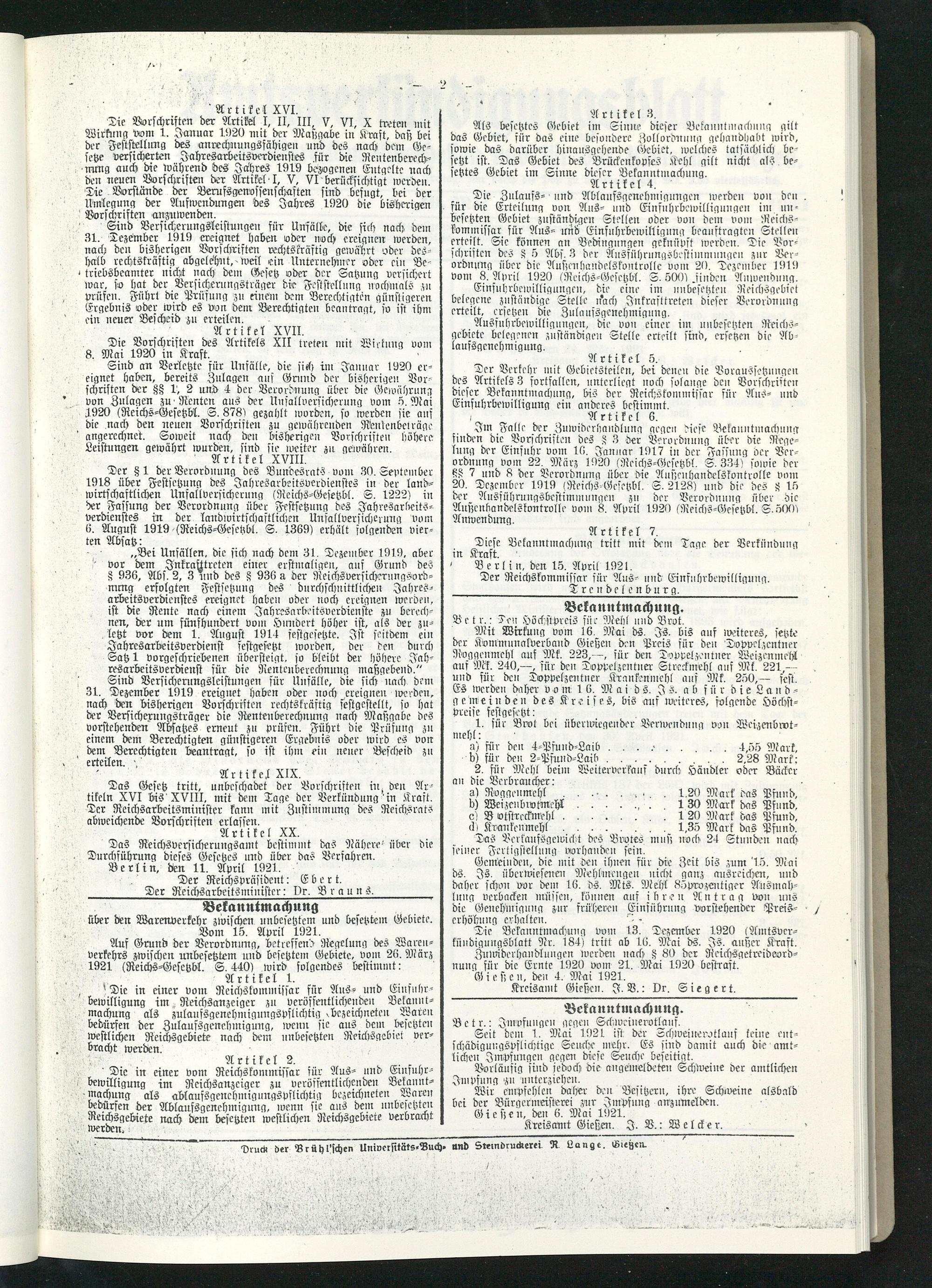 Amtsverkündigungsblatt für die Provinzialdirektion Oberhessen und der Kreisämter Gießen, Friedberg, Büdingen, Lauterbach, Schotten und Alsfeld. 1919-1937