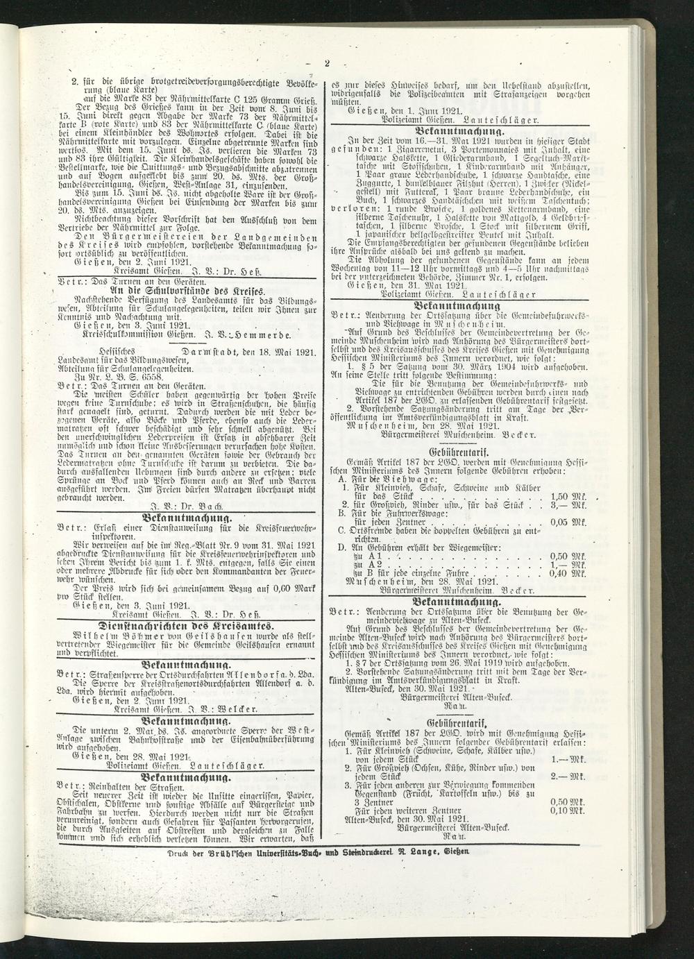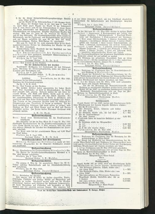 Amtsverkündigungsblatt für die Provinzialdirektion Oberhessen und der Kreisämter Gießen, Friedberg, Büdingen, Lauterbach, Schotten und Alsfeld. 1919-1937