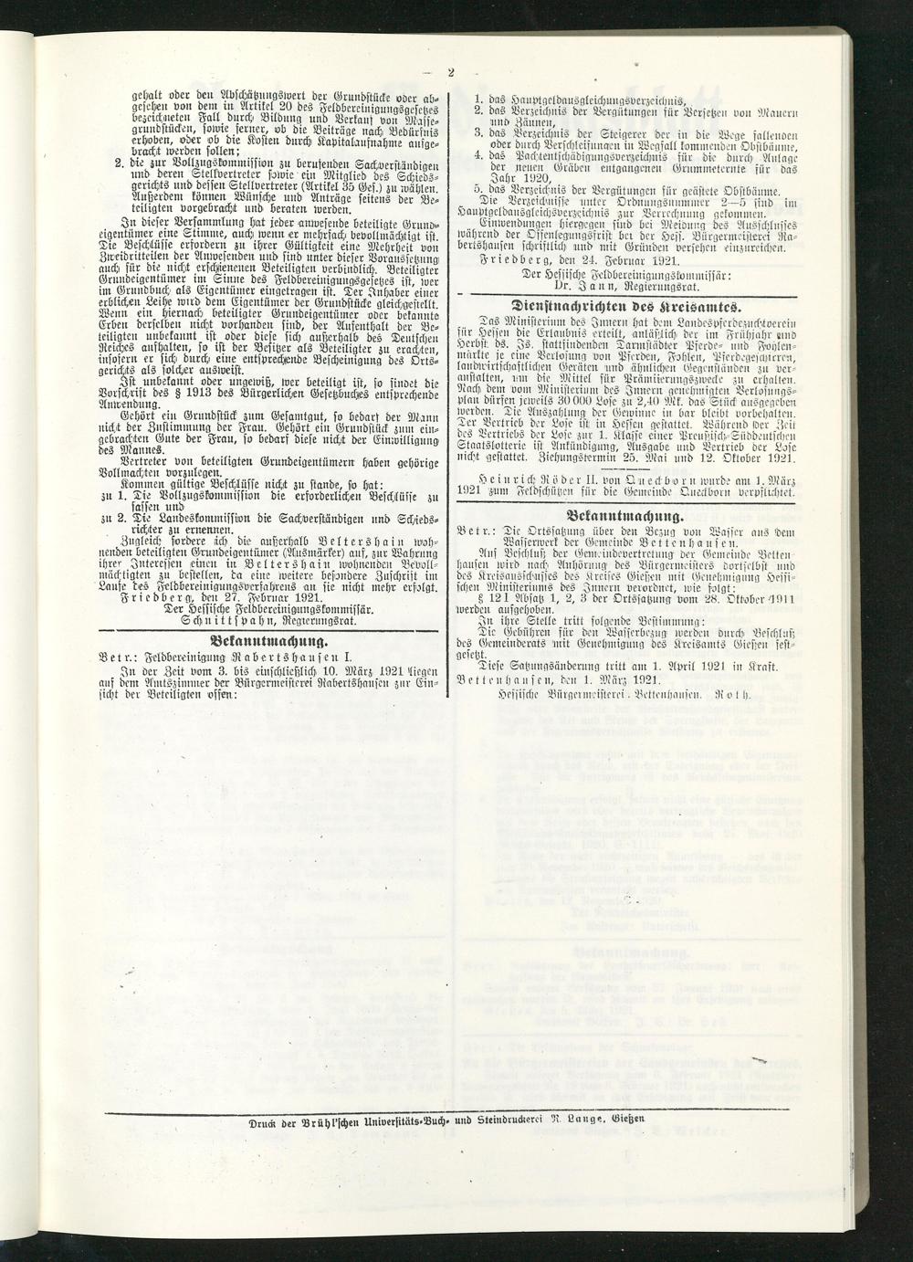 Amtsverkündigungsblatt für die Provinzialdirektion Oberhessen und der Kreisämter Gießen, Friedberg, Büdingen, Lauterbach, Schotten und Alsfeld. 1919-1937