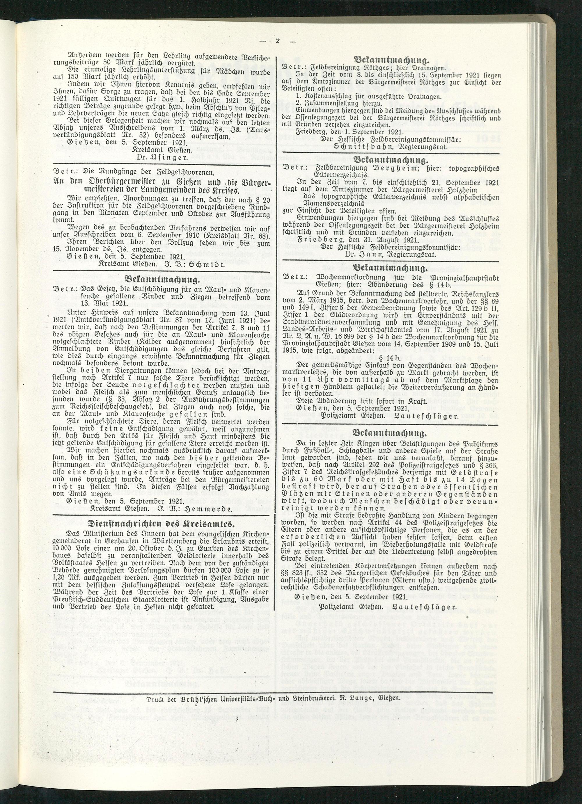 Amtsverkündigungsblatt für die Provinzialdirektion Oberhessen und der Kreisämter Gießen, Friedberg, Büdingen, Lauterbach, Schotten und Alsfeld. 1919-1937