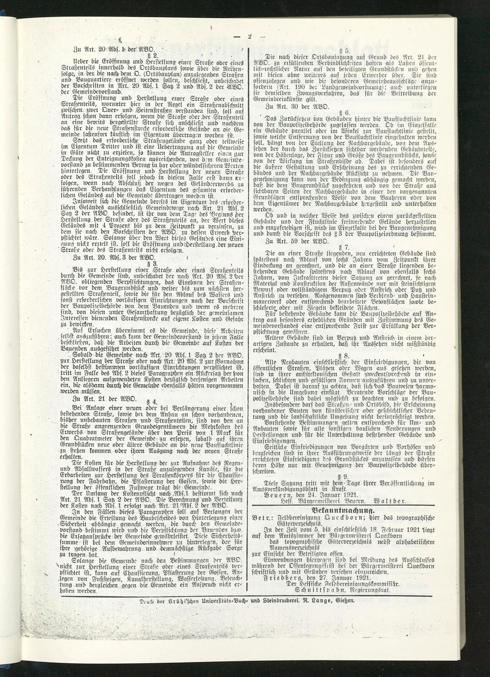 Amtsverkündigungsblatt für die Provinzialdirektion Oberhessen und der Kreisämter Gießen, Friedberg, Büdingen, Lauterbach, Schotten und Alsfeld. 1919-1937
