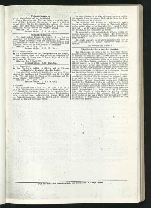 Amtsverkündigungsblatt für die Provinzialdirektion Oberhessen und der Kreisämter Gießen, Friedberg, Büdingen, Lauterbach, Schotten und Alsfeld. 1919-1937
