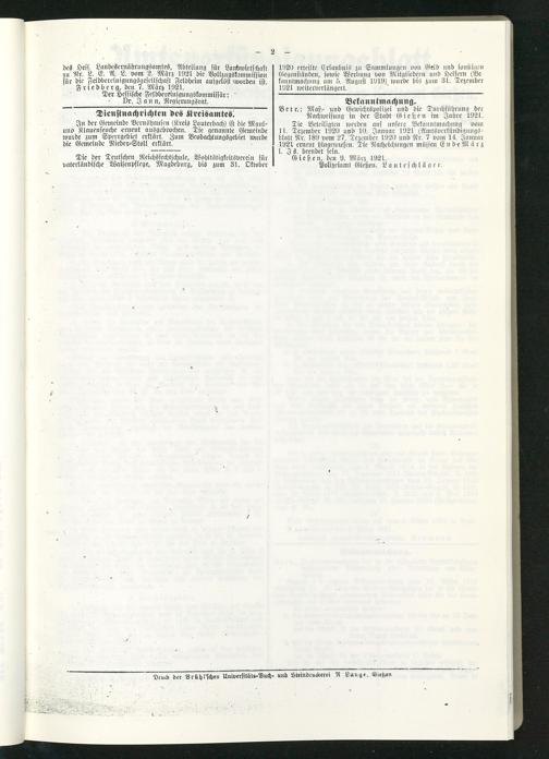 Amtsverkündigungsblatt für die Provinzialdirektion Oberhessen und der Kreisämter Gießen, Friedberg, Büdingen, Lauterbach, Schotten und Alsfeld. 1919-1937