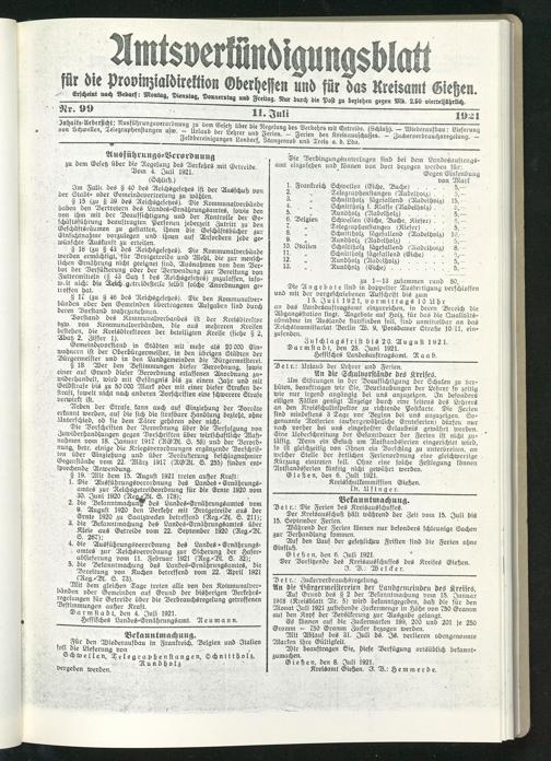 Amtsverkündigungsblatt für die Provinzialdirektion Oberhessen und der Kreisämter Gießen, Friedberg, Büdingen, Lauterbach, Schotten und Alsfeld. 1919-1937