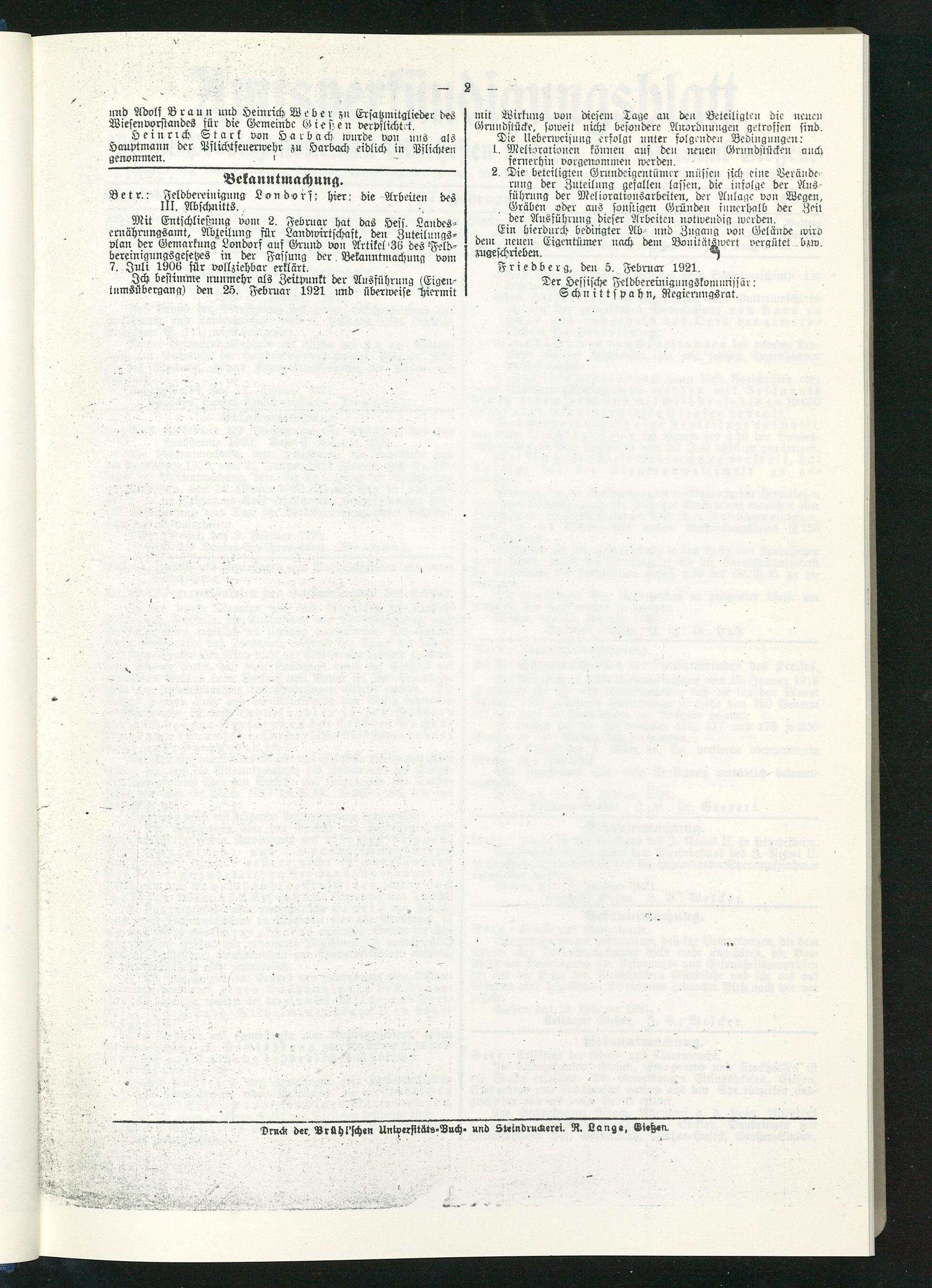 Amtsverkündigungsblatt für die Provinzialdirektion Oberhessen und der Kreisämter Gießen, Friedberg, Büdingen, Lauterbach, Schotten und Alsfeld. 1919-1937