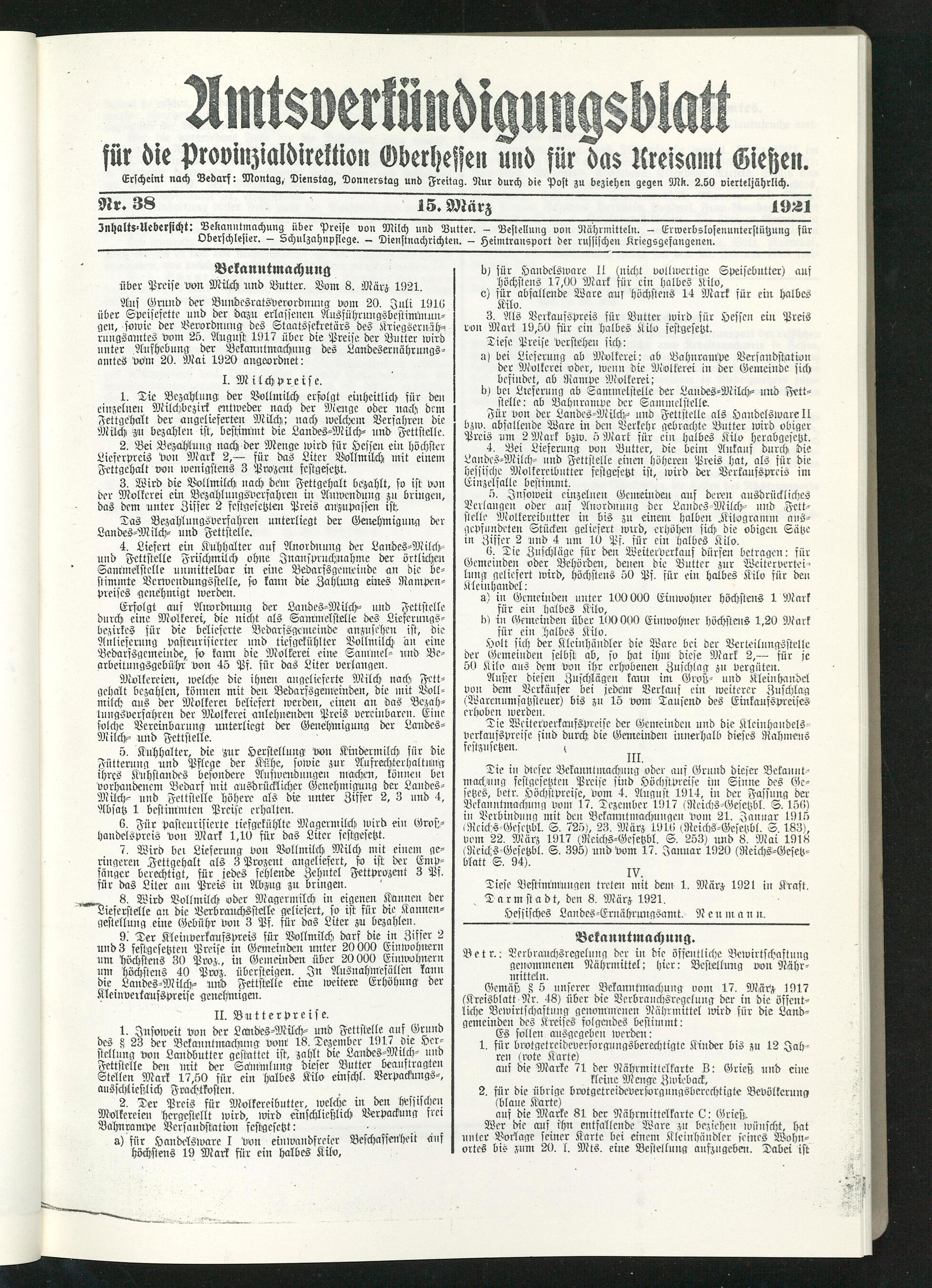Amtsverkündigungsblatt für die Provinzialdirektion Oberhessen und der Kreisämter Gießen, Friedberg, Büdingen, Lauterbach, Schotten und Alsfeld. 1919-1937