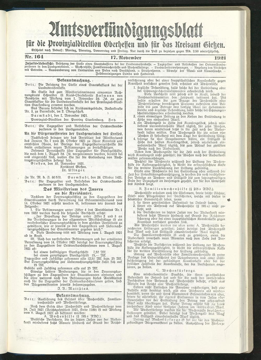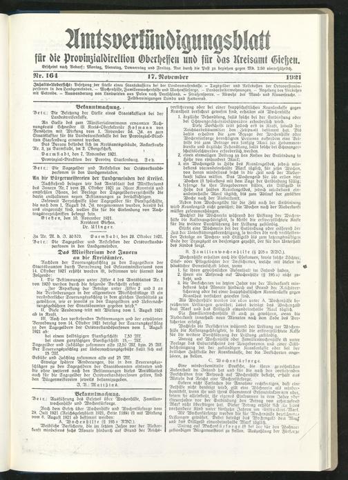 Amtsverkündigungsblatt für die Provinzialdirektion Oberhessen und der Kreisämter Gießen, Friedberg, Büdingen, Lauterbach, Schotten und Alsfeld. 1919-1937