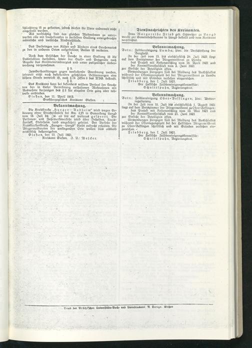 Amtsverkündigungsblatt für die Provinzialdirektion Oberhessen und der Kreisämter Gießen, Friedberg, Büdingen, Lauterbach, Schotten und Alsfeld. 1919-1937