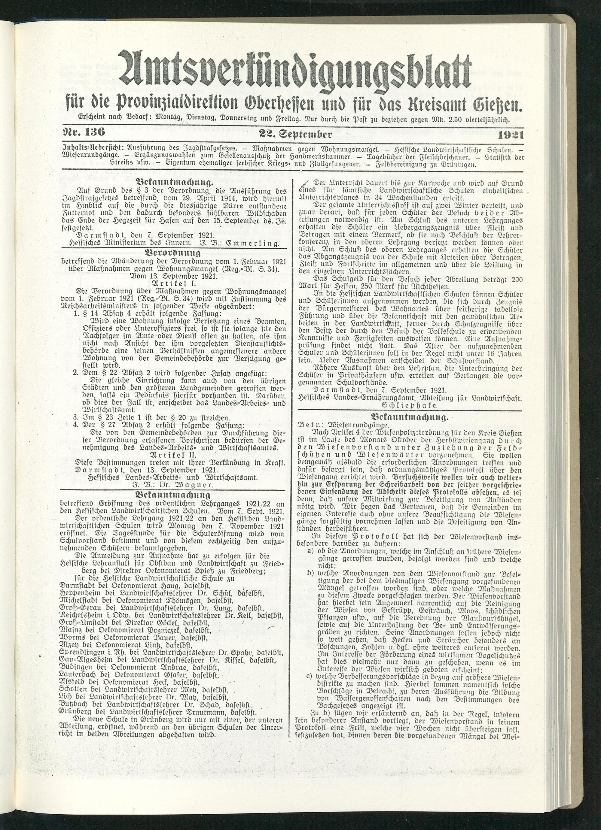 Amtsverkündigungsblatt für die Provinzialdirektion Oberhessen und der Kreisämter Gießen, Friedberg, Büdingen, Lauterbach, Schotten und Alsfeld. 1919-1937