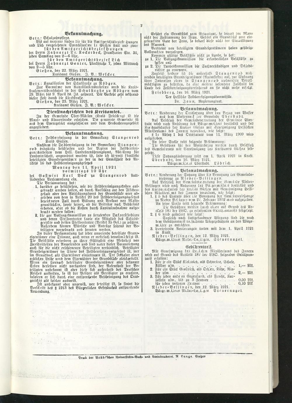 Amtsverkündigungsblatt für die Provinzialdirektion Oberhessen und der Kreisämter Gießen, Friedberg, Büdingen, Lauterbach, Schotten und Alsfeld. 1919-1937