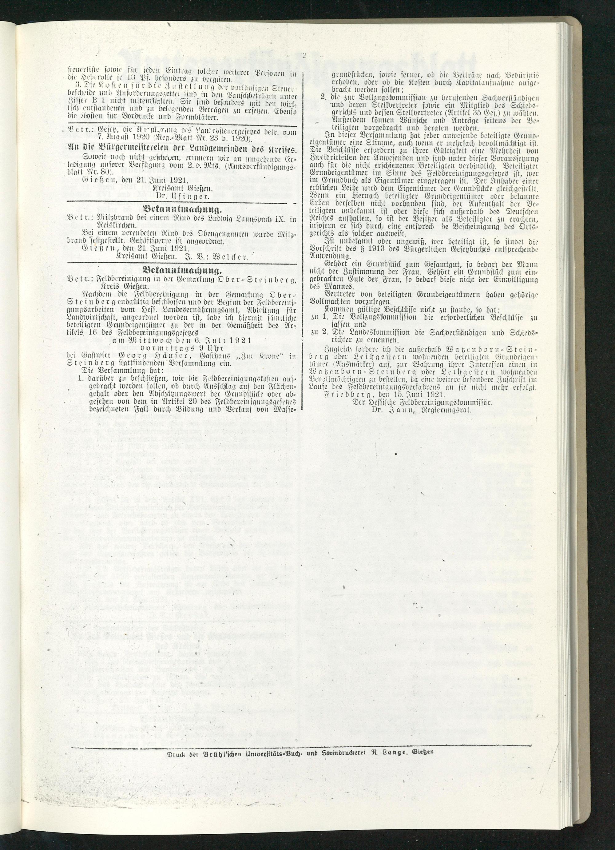 Amtsverkündigungsblatt für die Provinzialdirektion Oberhessen und der Kreisämter Gießen, Friedberg, Büdingen, Lauterbach, Schotten und Alsfeld. 1919-1937