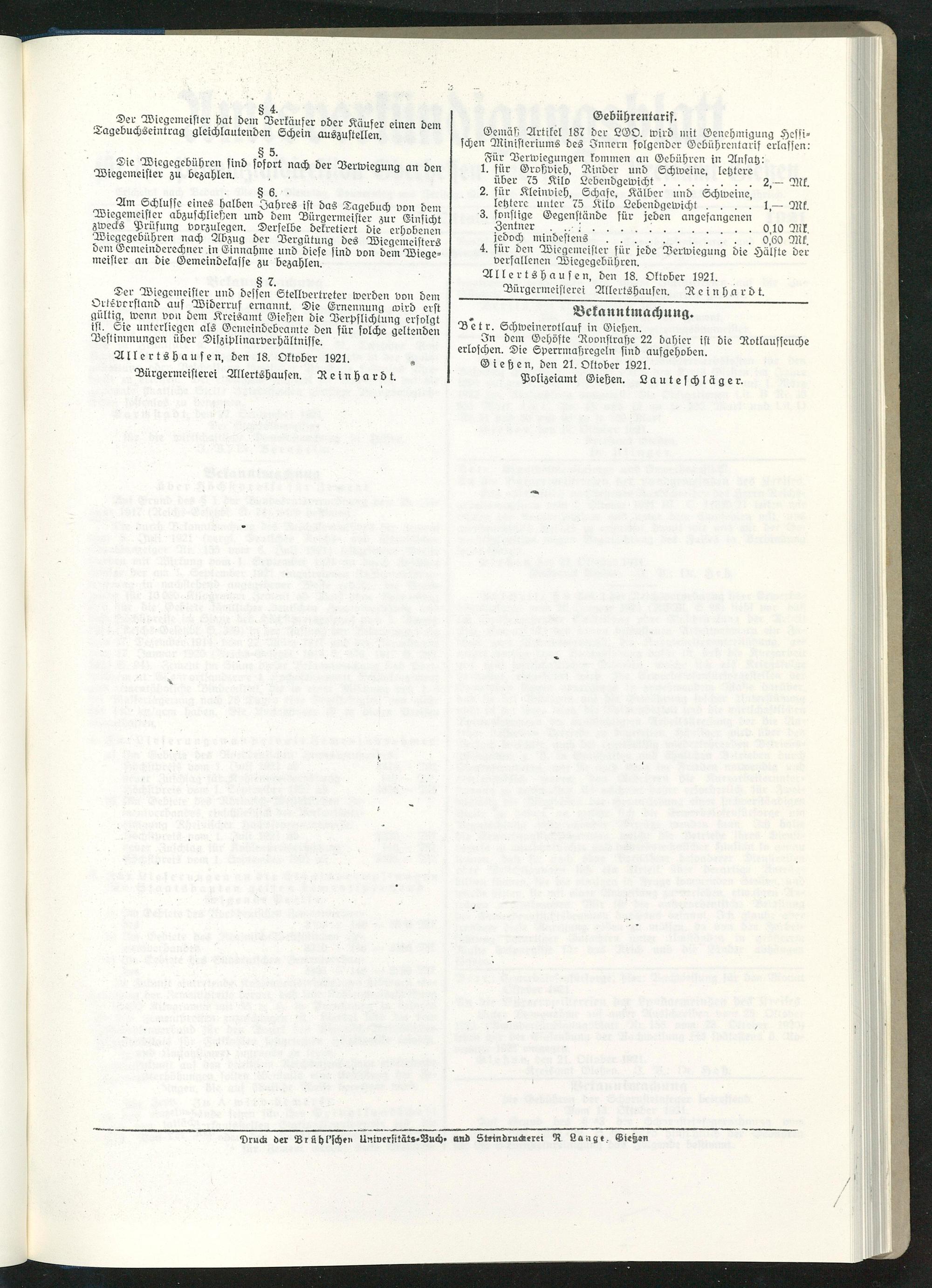 Amtsverkündigungsblatt für die Provinzialdirektion Oberhessen und der Kreisämter Gießen, Friedberg, Büdingen, Lauterbach, Schotten und Alsfeld. 1919-1937