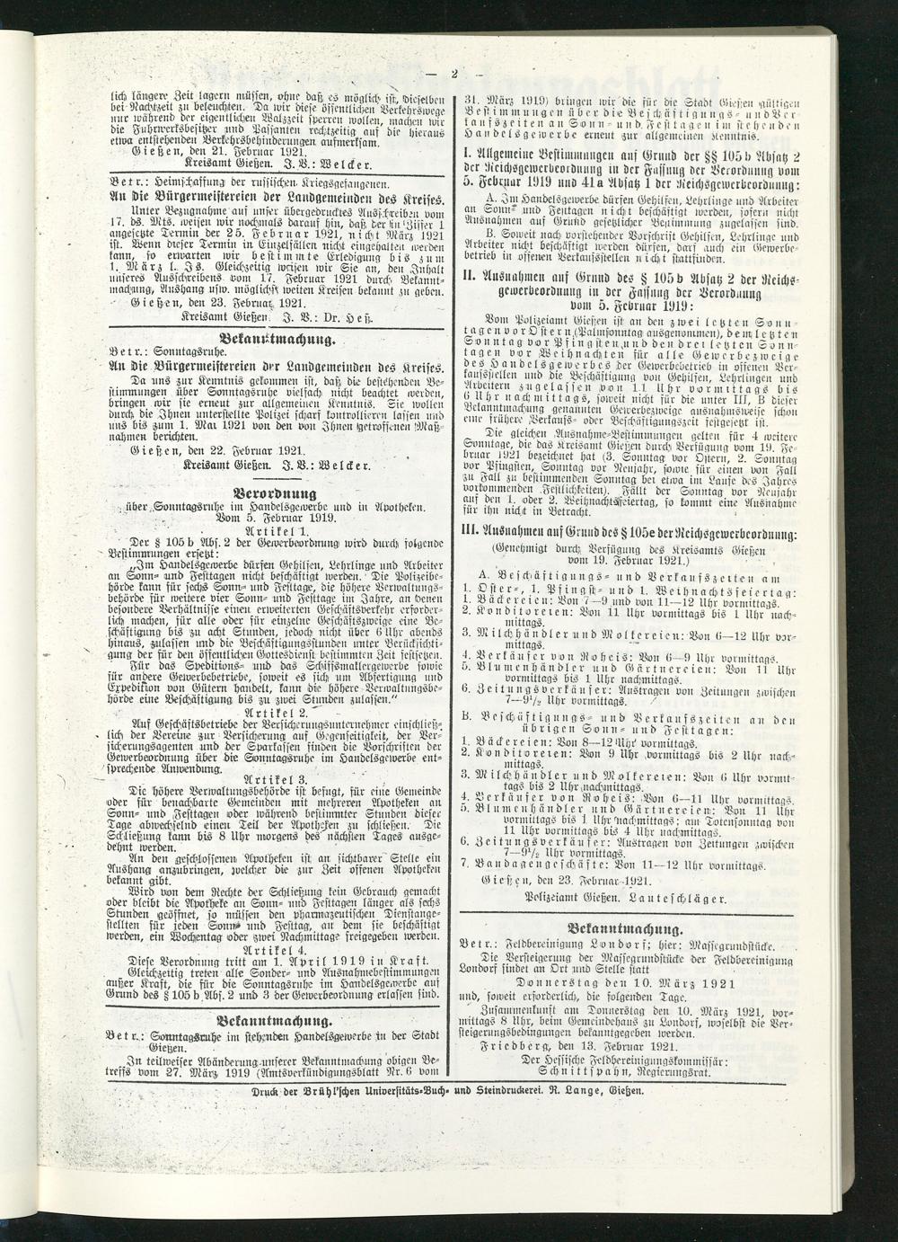 Amtsverkündigungsblatt für die Provinzialdirektion Oberhessen und der Kreisämter Gießen, Friedberg, Büdingen, Lauterbach, Schotten und Alsfeld. 1919-1937