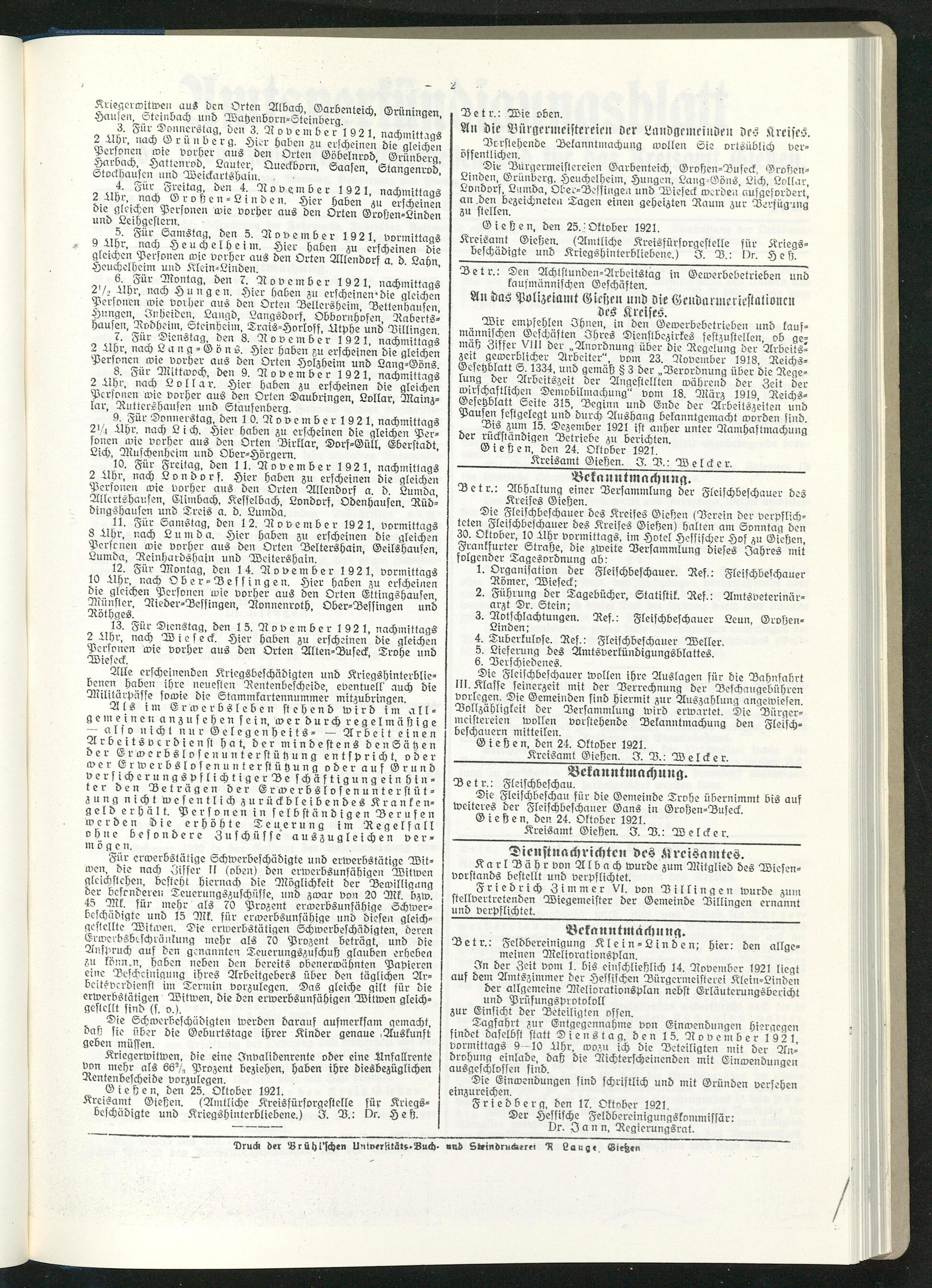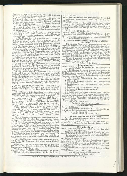 Amtsverkündigungsblatt für die Provinzialdirektion Oberhessen und der Kreisämter Gießen, Friedberg, Büdingen, Lauterbach, Schotten und Alsfeld. 1919-1937