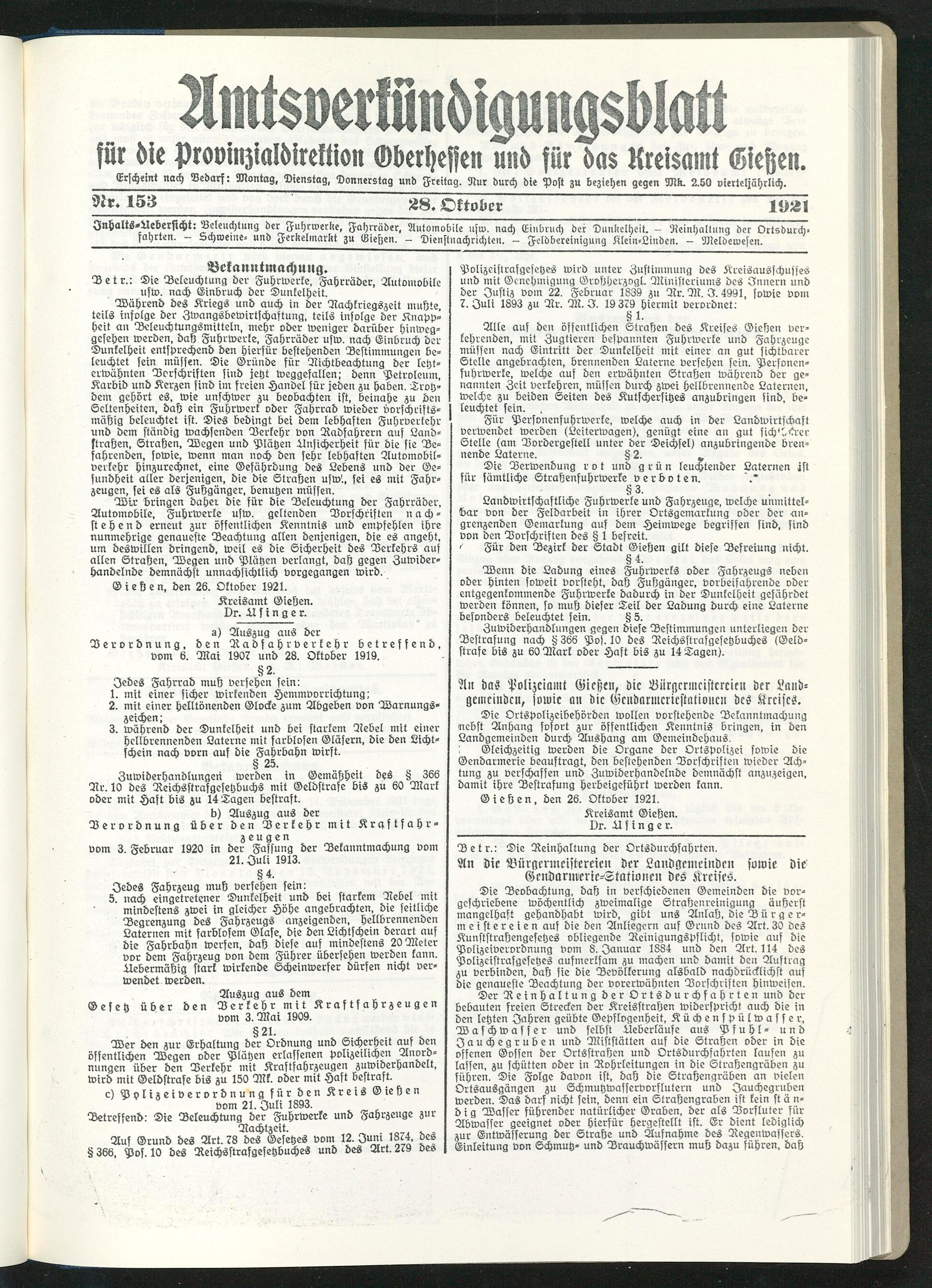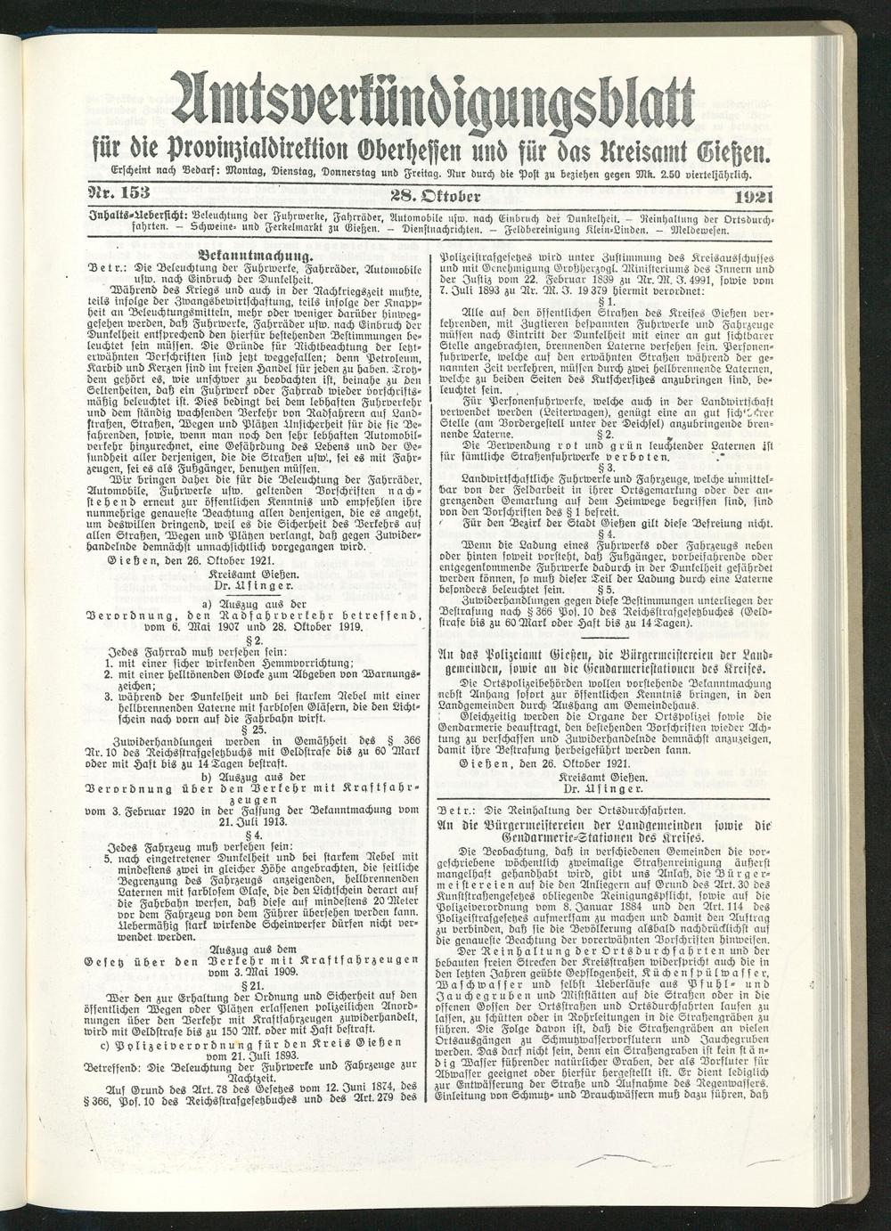 Amtsverkündigungsblatt für die Provinzialdirektion Oberhessen und der Kreisämter Gießen, Friedberg, Büdingen, Lauterbach, Schotten und Alsfeld. 1919-1937