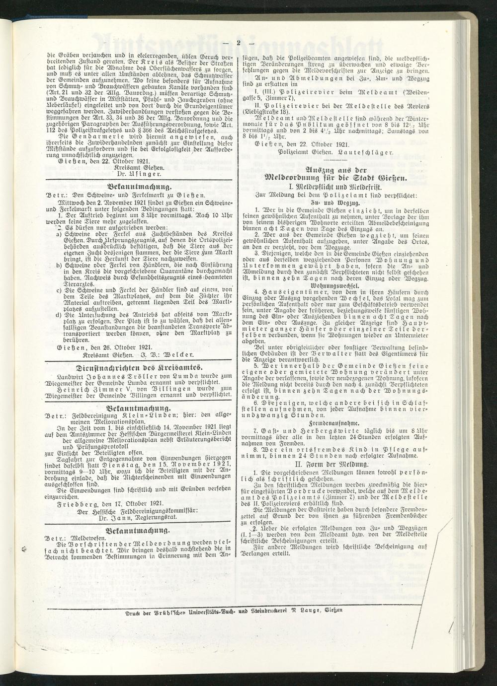 Amtsverkündigungsblatt für die Provinzialdirektion Oberhessen und der Kreisämter Gießen, Friedberg, Büdingen, Lauterbach, Schotten und Alsfeld. 1919-1937