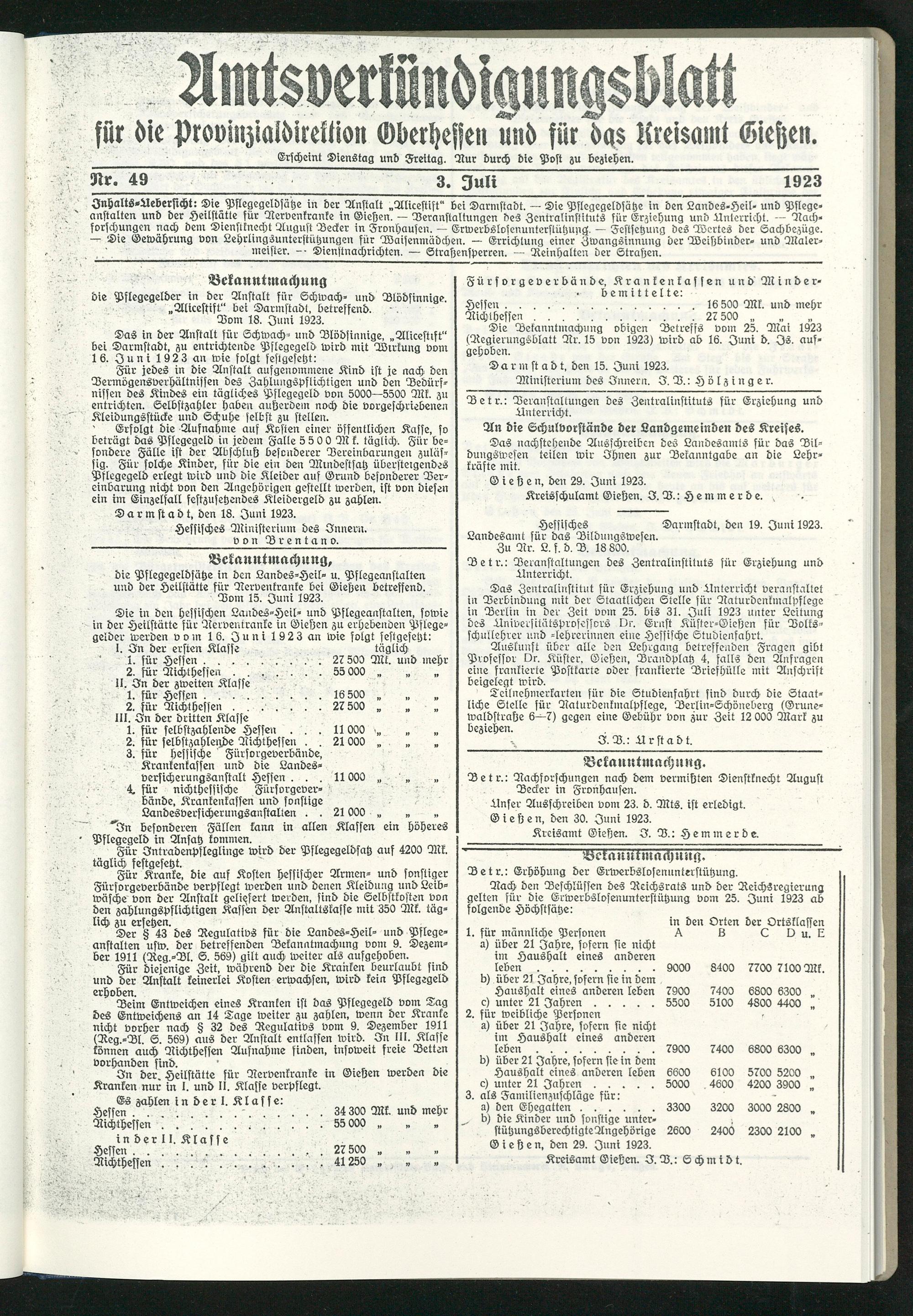 Amtsverkündigungsblatt für die Provinzialdirektion Oberhessen und der Kreisämter Gießen, Friedberg, Büdingen, Lauterbach, Schotten und Alsfeld. 1919-1937