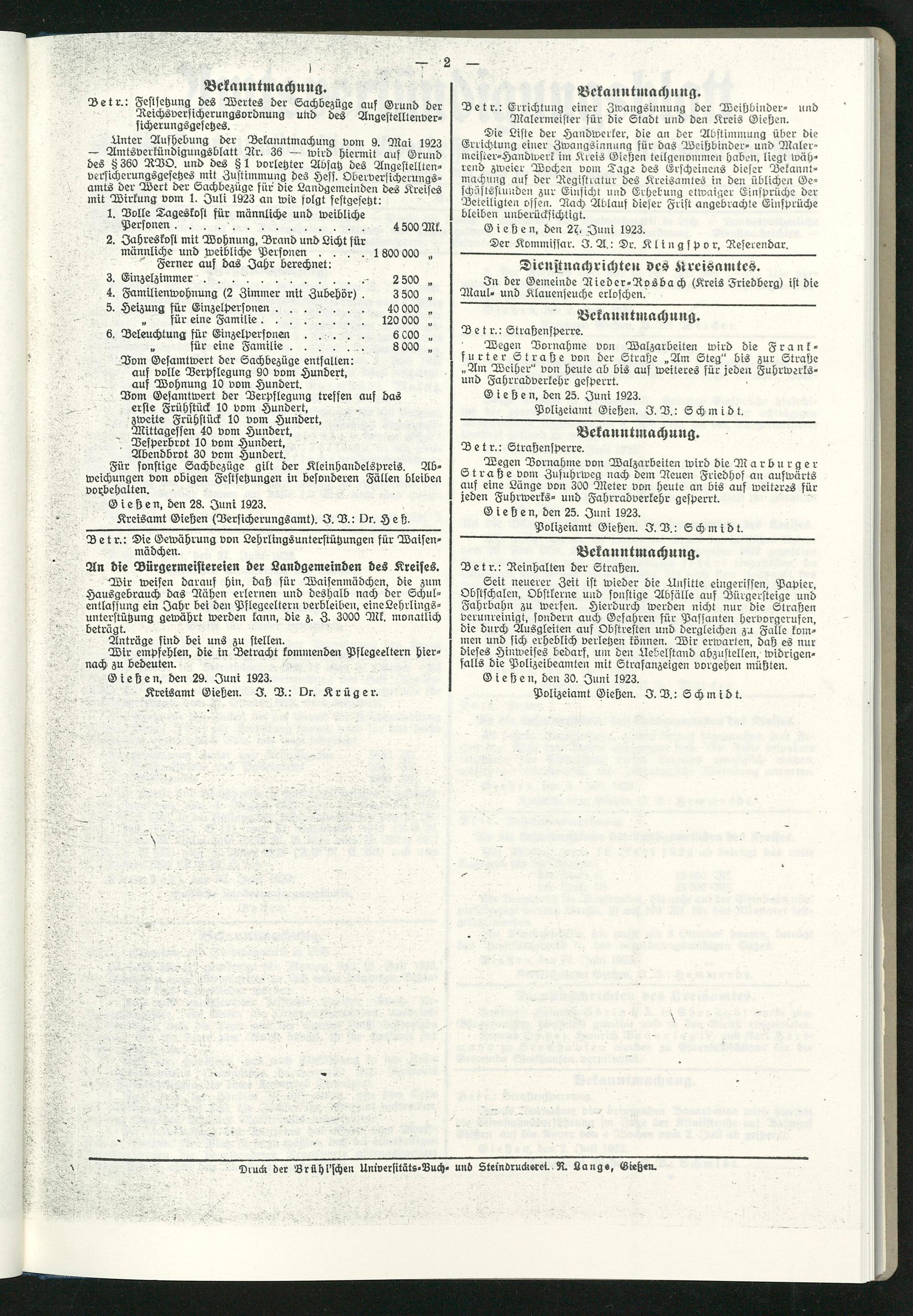 Amtsverkündigungsblatt für die Provinzialdirektion Oberhessen und der Kreisämter Gießen, Friedberg, Büdingen, Lauterbach, Schotten und Alsfeld. 1919-1937