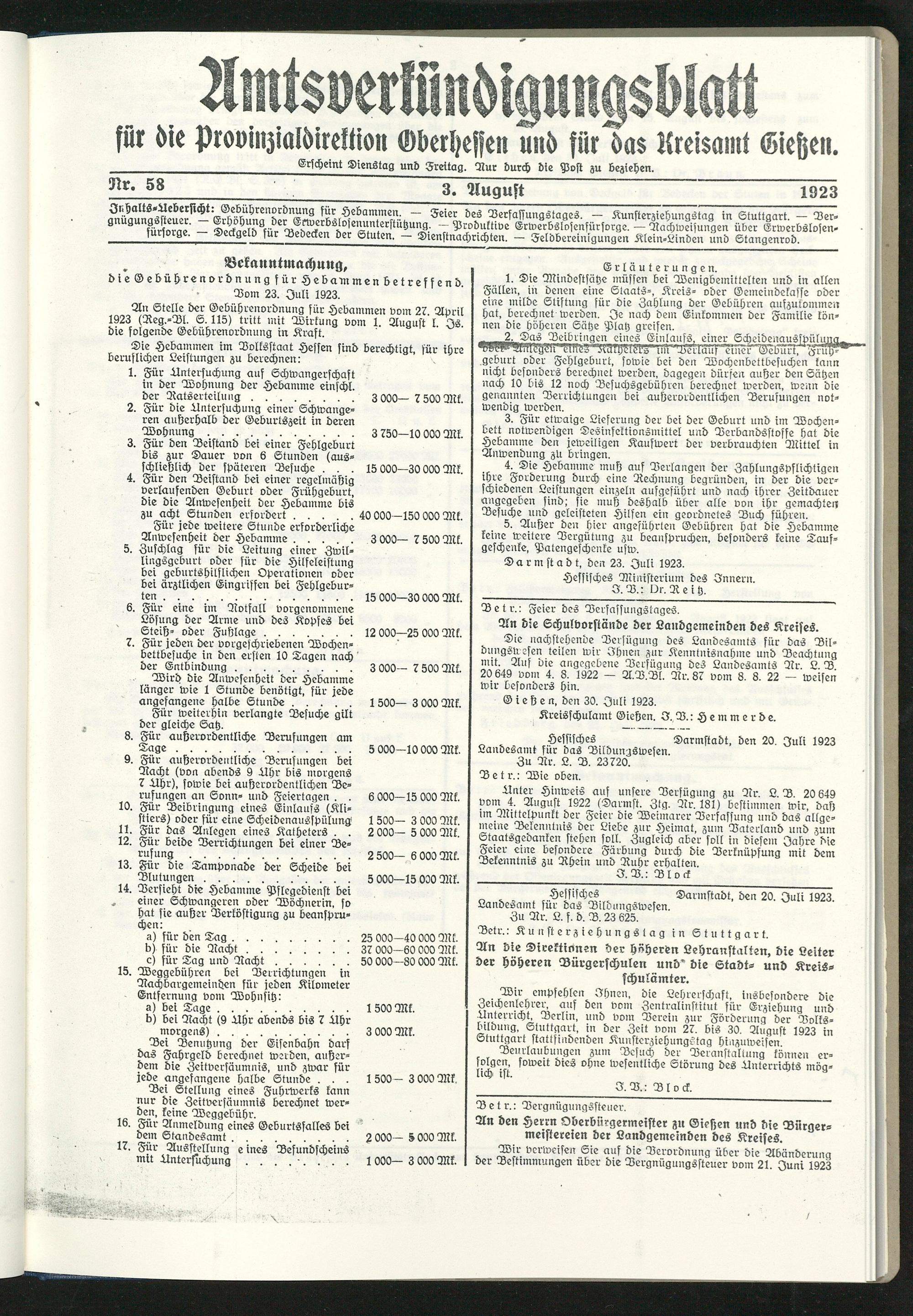 Amtsverkündigungsblatt für die Provinzialdirektion Oberhessen und der Kreisämter Gießen, Friedberg, Büdingen, Lauterbach, Schotten und Alsfeld. 1919-1937