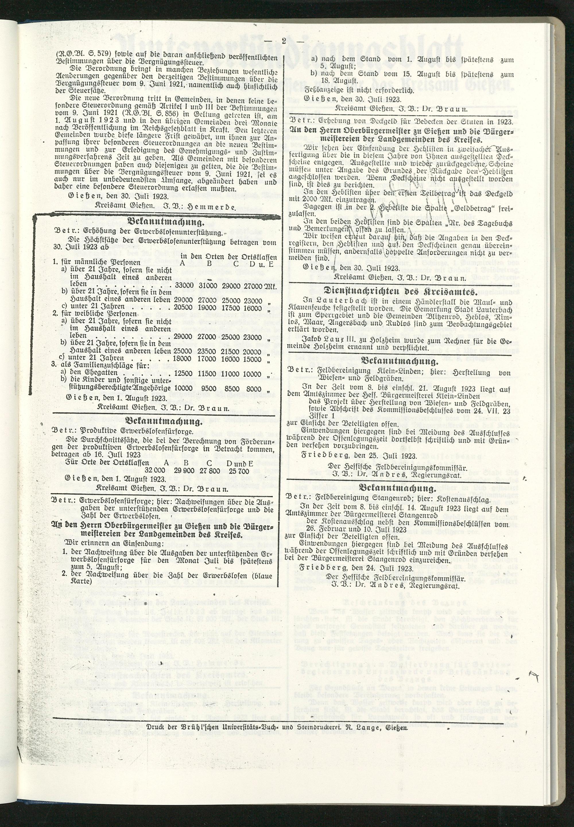 Amtsverkündigungsblatt für die Provinzialdirektion Oberhessen und der Kreisämter Gießen, Friedberg, Büdingen, Lauterbach, Schotten und Alsfeld. 1919-1937