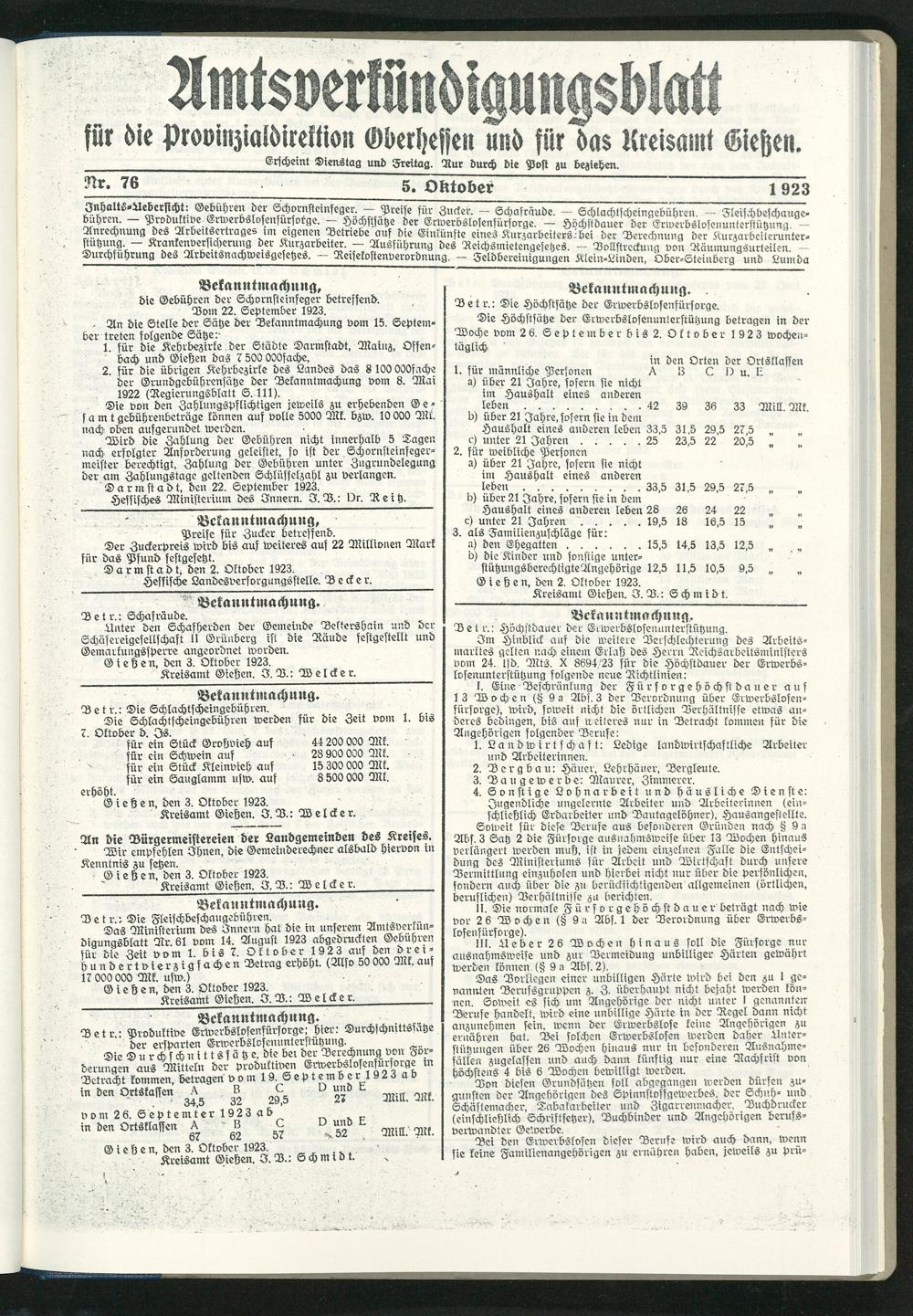 Amtsverkündigungsblatt für die Provinzialdirektion Oberhessen und der Kreisämter Gießen, Friedberg, Büdingen, Lauterbach, Schotten und Alsfeld. 1919-1937