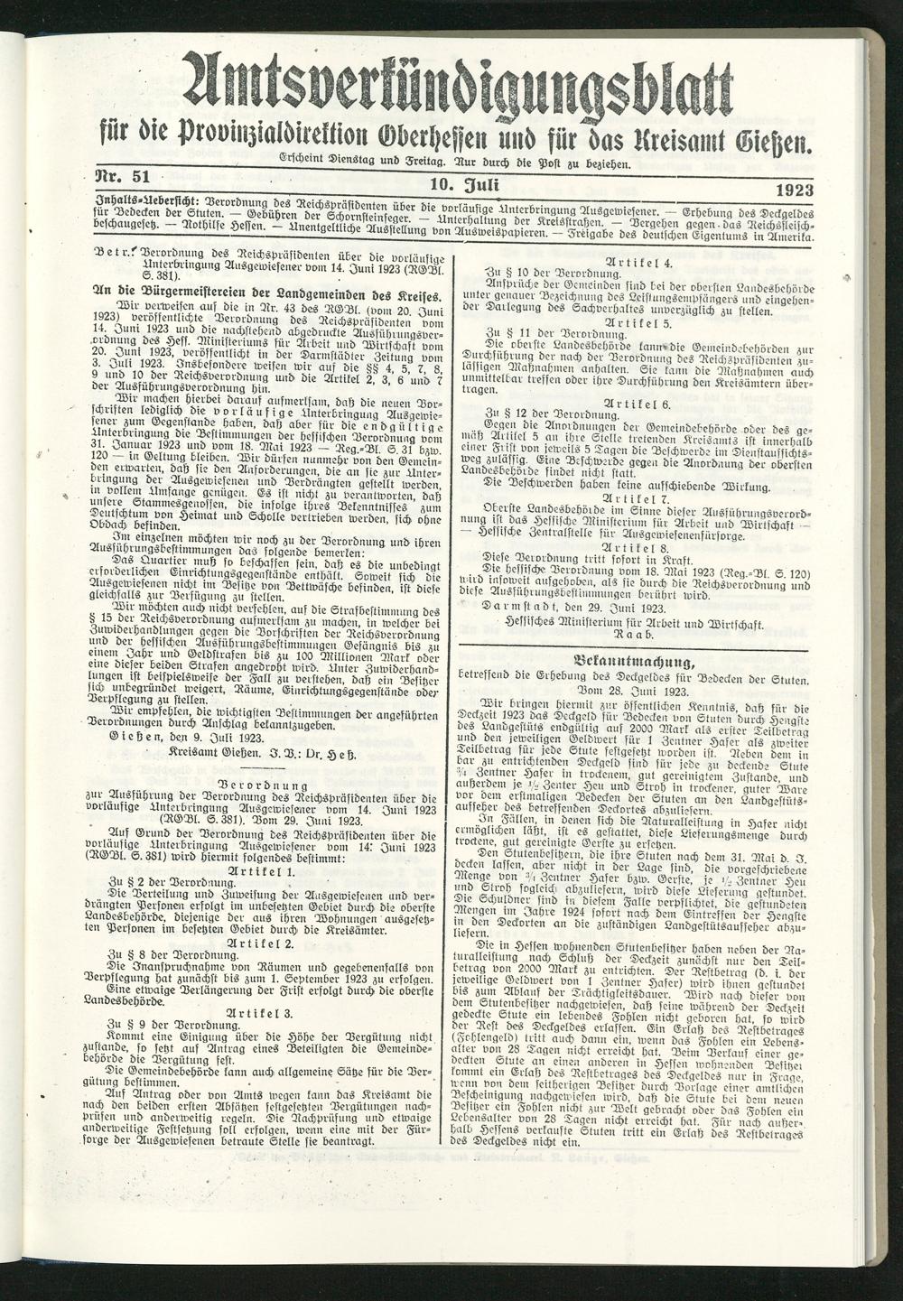Amtsverkündigungsblatt für die Provinzialdirektion Oberhessen und der Kreisämter Gießen, Friedberg, Büdingen, Lauterbach, Schotten und Alsfeld. 1919-1937