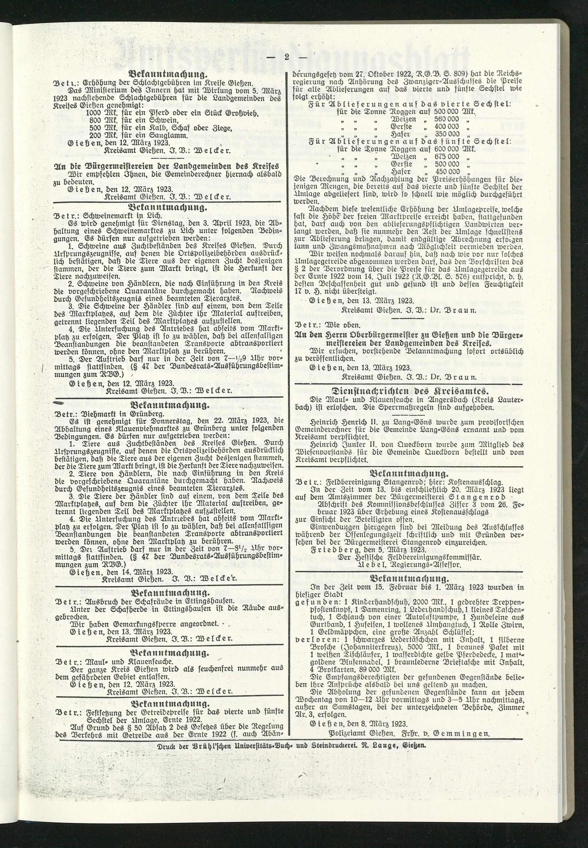 Amtsverkündigungsblatt für die Provinzialdirektion Oberhessen und der Kreisämter Gießen, Friedberg, Büdingen, Lauterbach, Schotten und Alsfeld. 1919-1937